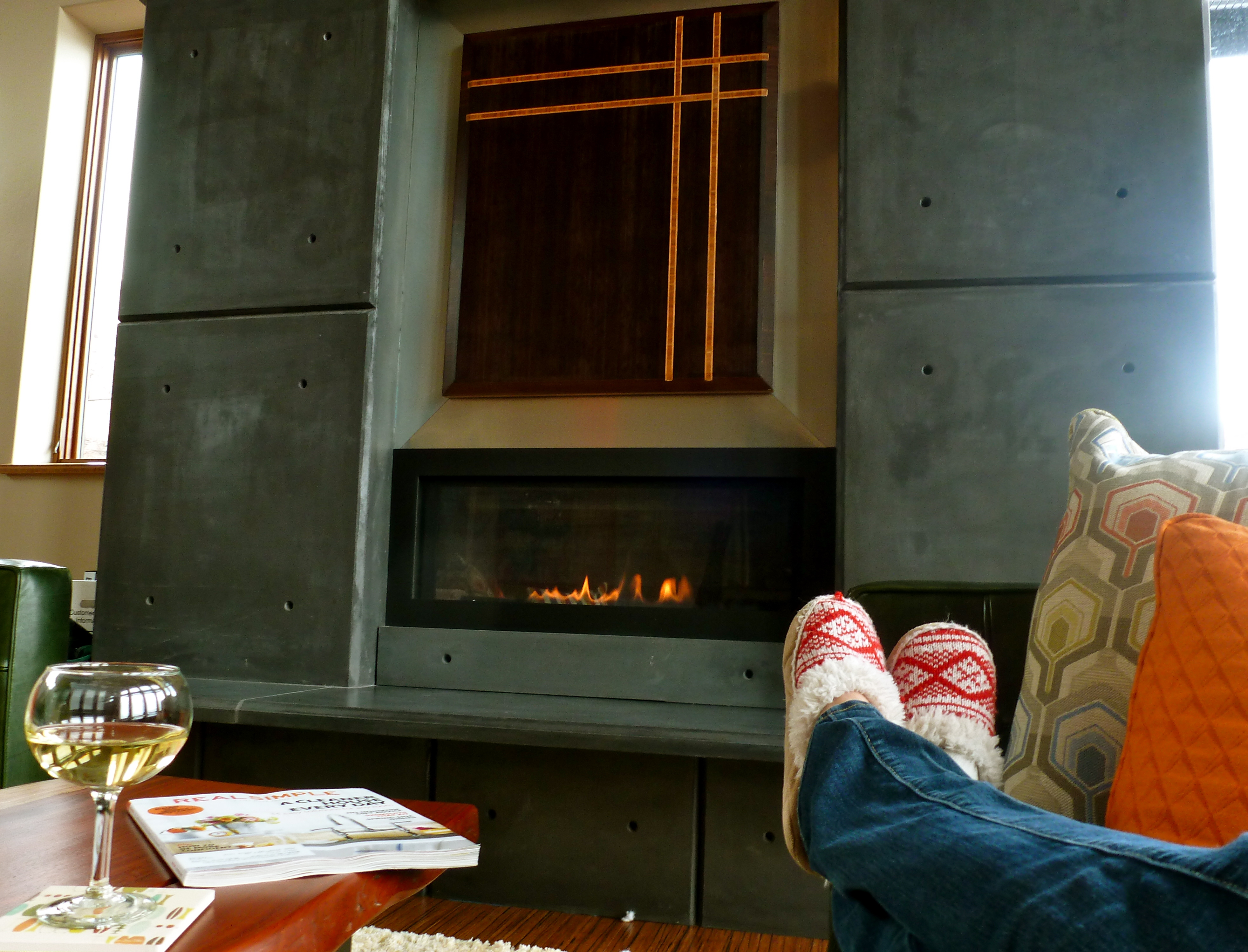 Later, I put on my slippers, familiar friends of mine these days, and enjoyed a glass of wine by the fire. I felt so grateful to be cozy and warm in my home with my little family.