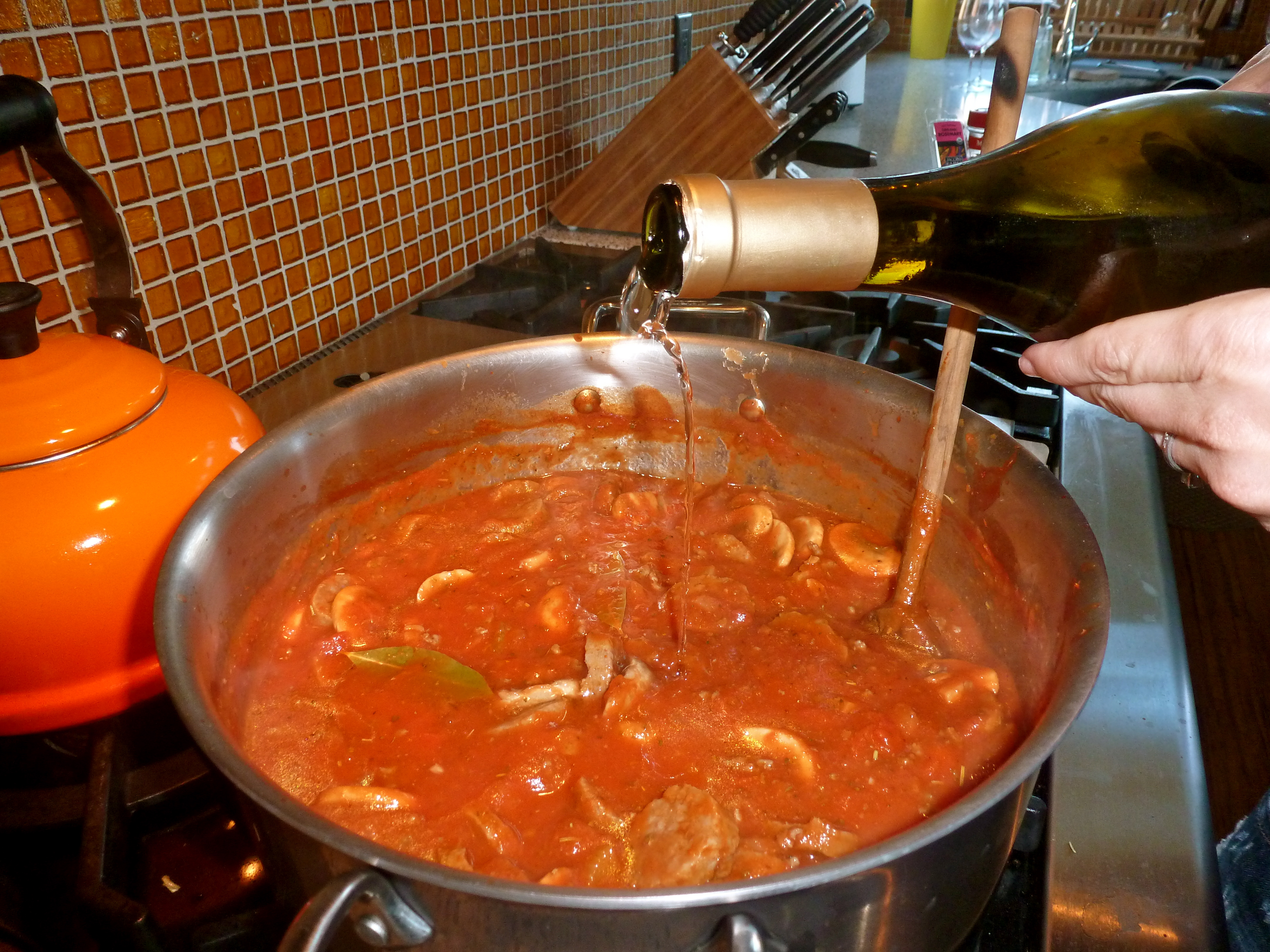 On Friday, we slept late (something Amanda rarely does, with two young daughters), enjoyed coffee, then met another friend for lunch in Salt Lake. Afterward, we went to visit my lovely wedding dress and tried it on with my new sparkly shoes so my Maid of Honor could see it in person. After wedding-prompted squealing and hugs, we headed back up to Park City to spend the afternoon in the kitchen. Amanda had finally agreed to allow me to watch (and even help!) her make her family’s legendary meat sauce. The recipe is a closely guarded secret, and unfortunately, I was having so much fun sipping wine and cooking with my best friend that I didn’t take notes! (Good thing I have two quarts of it in the freezer to enjoy!)