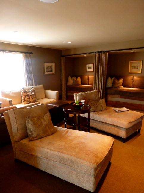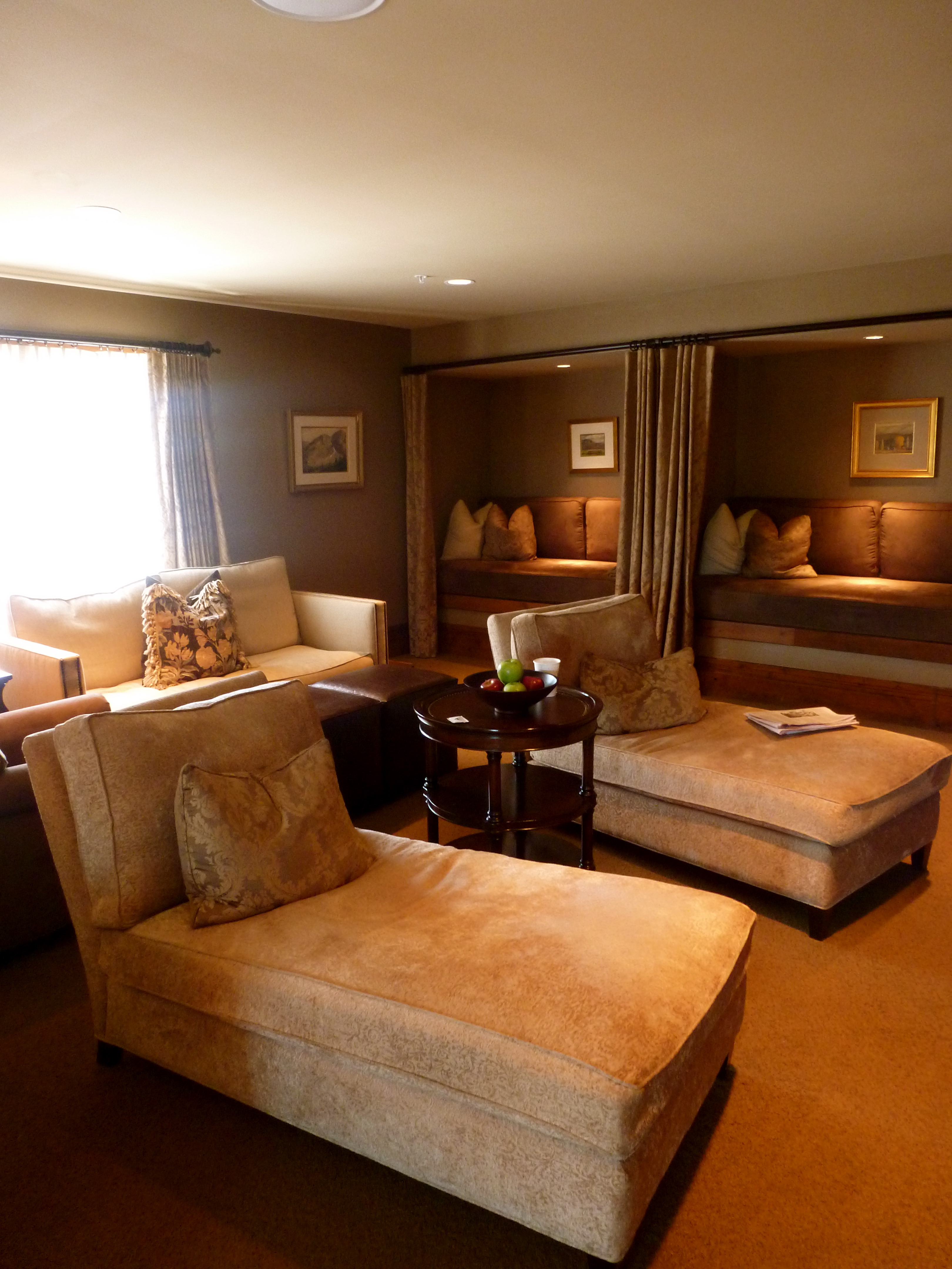 My belated birthday gift to Amanda was a day of indulgence at the spa at Stein Eriksen Lodge. I had never been there, but selected it based on reputation. The whole experience was the best 3 hours in recent memory! We were whisked to the spa in a ‘stretch’ golf cart. We arrived early, as recommended by the staff, to enjoy the facility and have lunch. The spa itself is lovely, and we lounged in the sun by the pool before lunch was served in a sunny room called the Atrium.