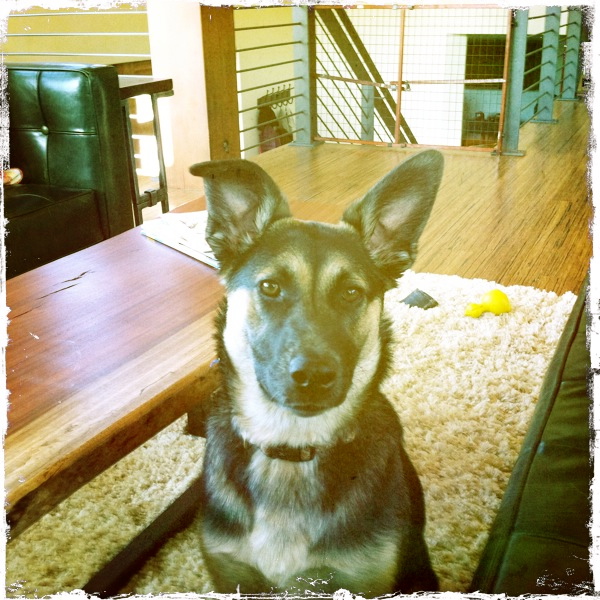I love that you can see the puppy toys strewn around the floor, the newspapers still in green bags on the console table (unread), the box of wine bottles to be recycled in the background, the wilting bouquet of garden flowers from John on the table. Just life.