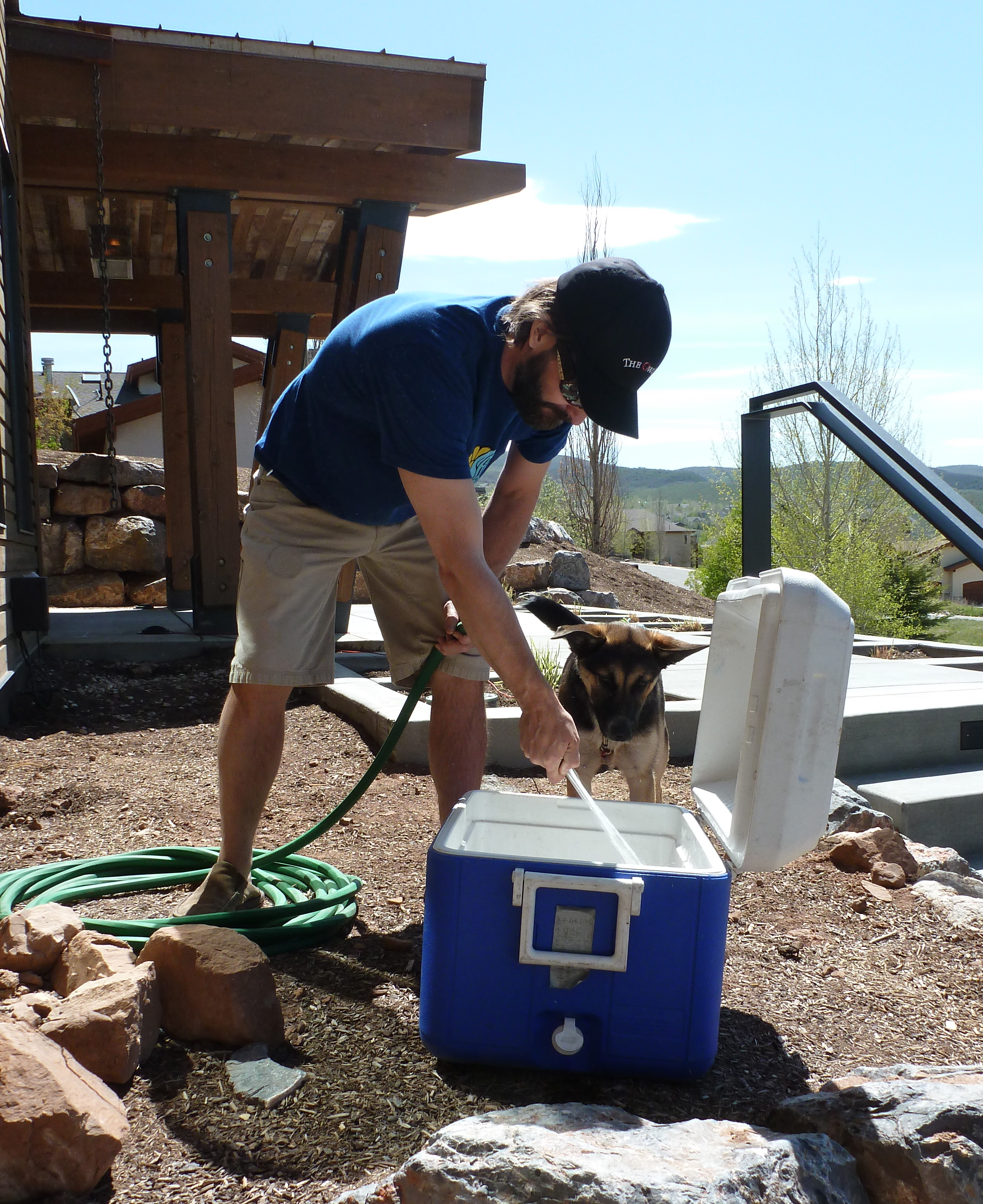 John takes care of the outside, which includes the camp, fire, coolers (our food and beverage fridge), water jugs.