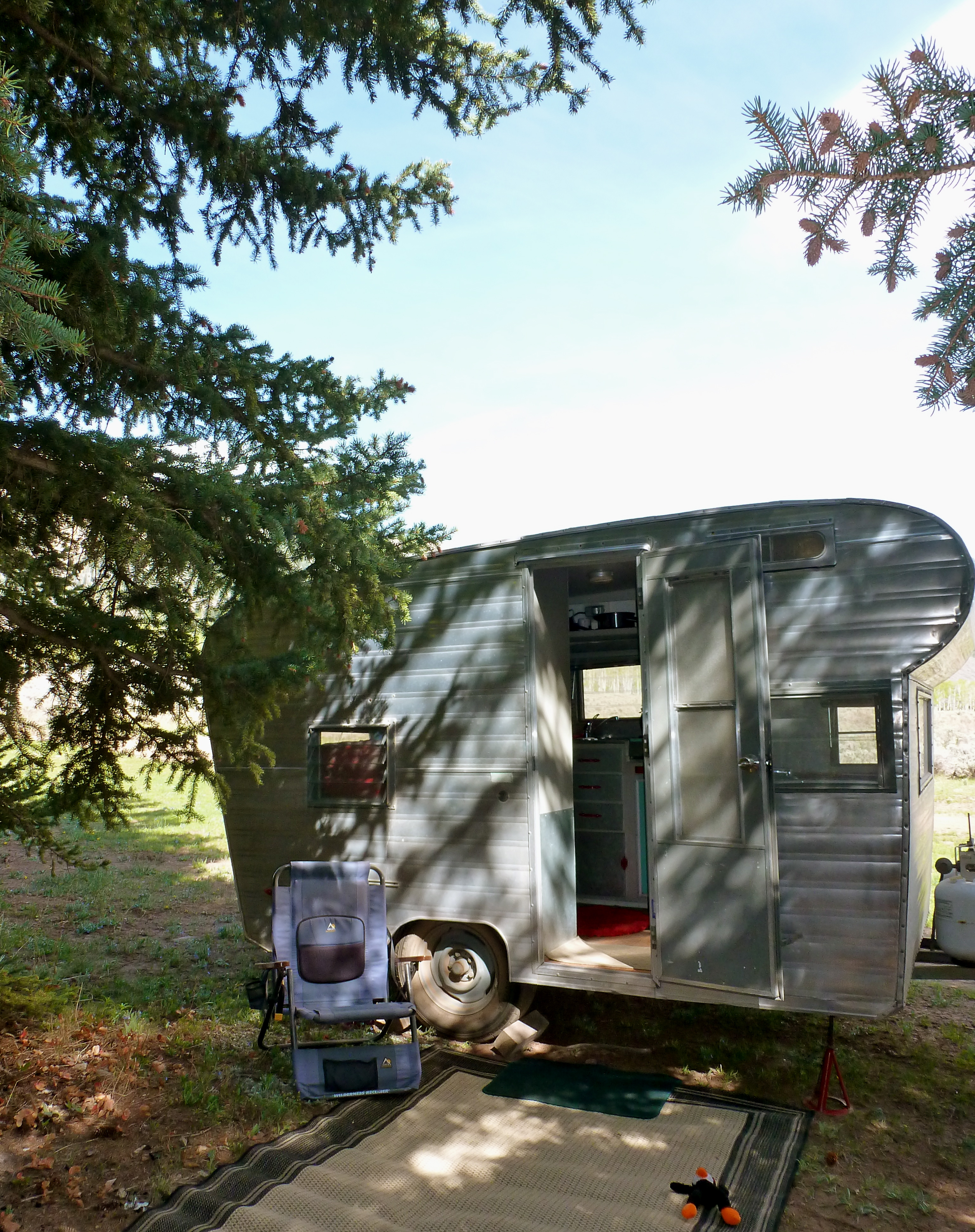 We’ve spent a lot of time in this 13-foot cottage on wheels. I joke that extended periods of time with your significant other in a space so tiny is either going to make or break your relationship. Luckily, John and I travel well together and make a great team. We have a system that has evolved over time to set up camp. We pour a drink and cheers each other. Then I take care of the inside, setting up our living space with all of our creature comforts.