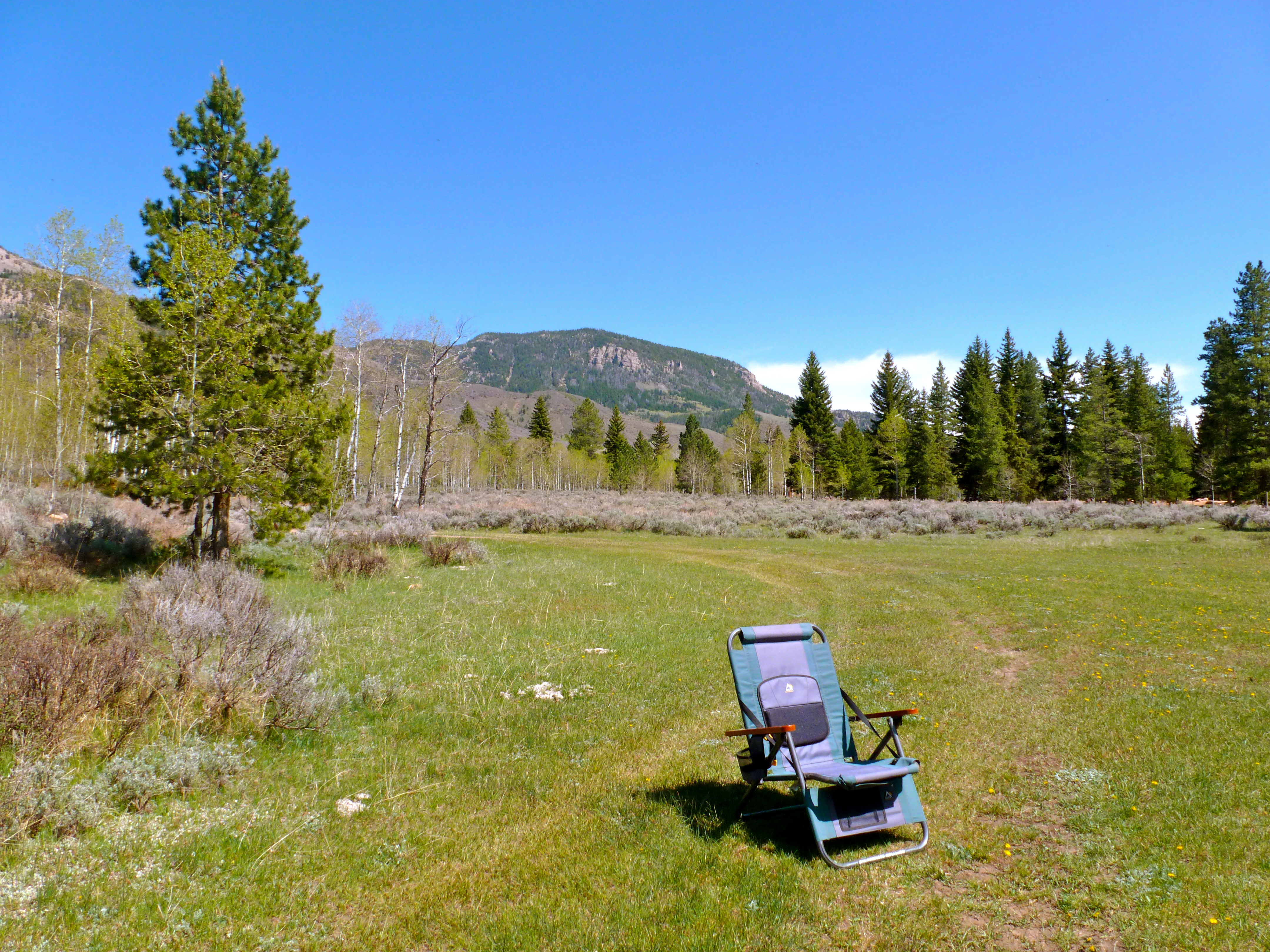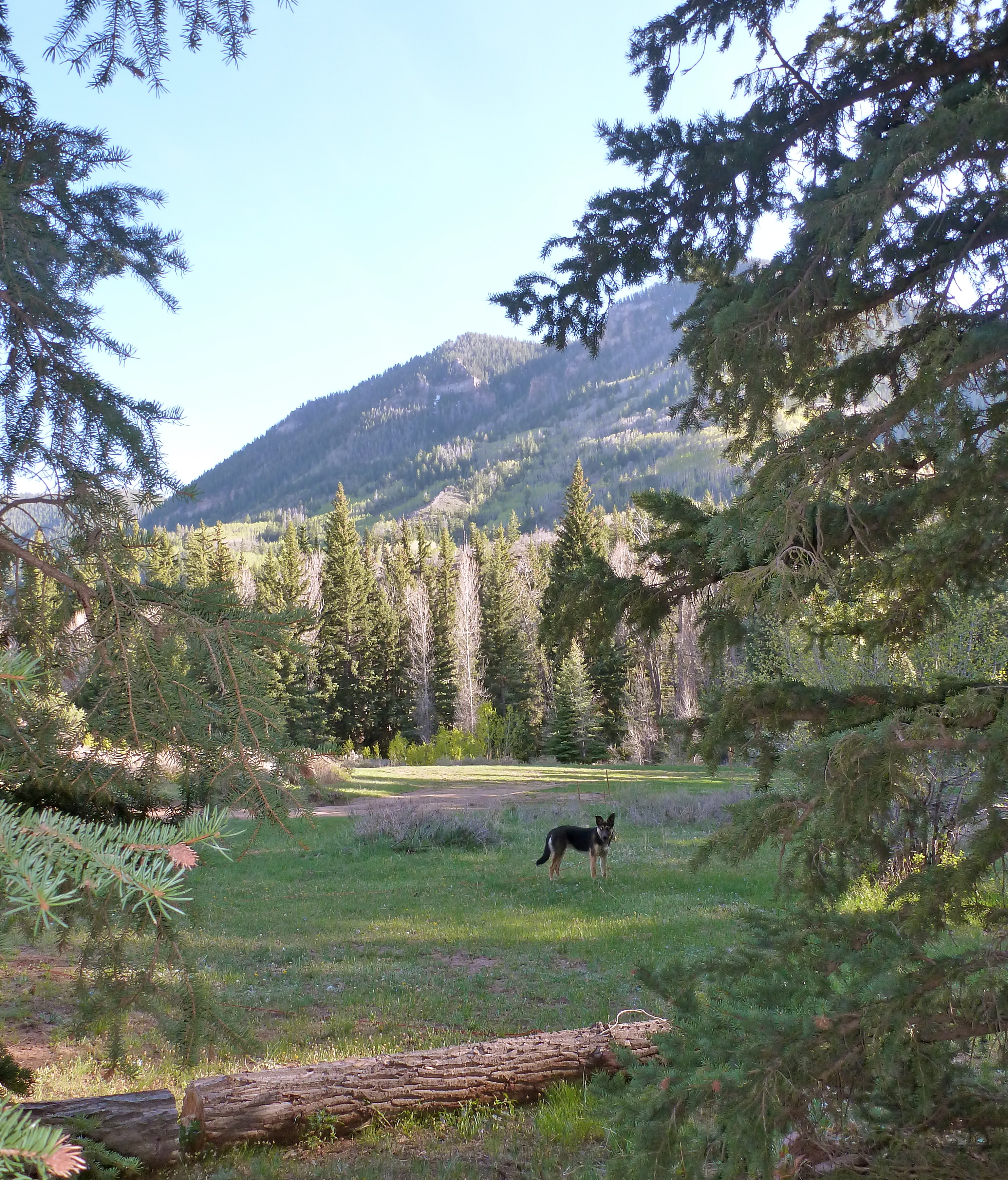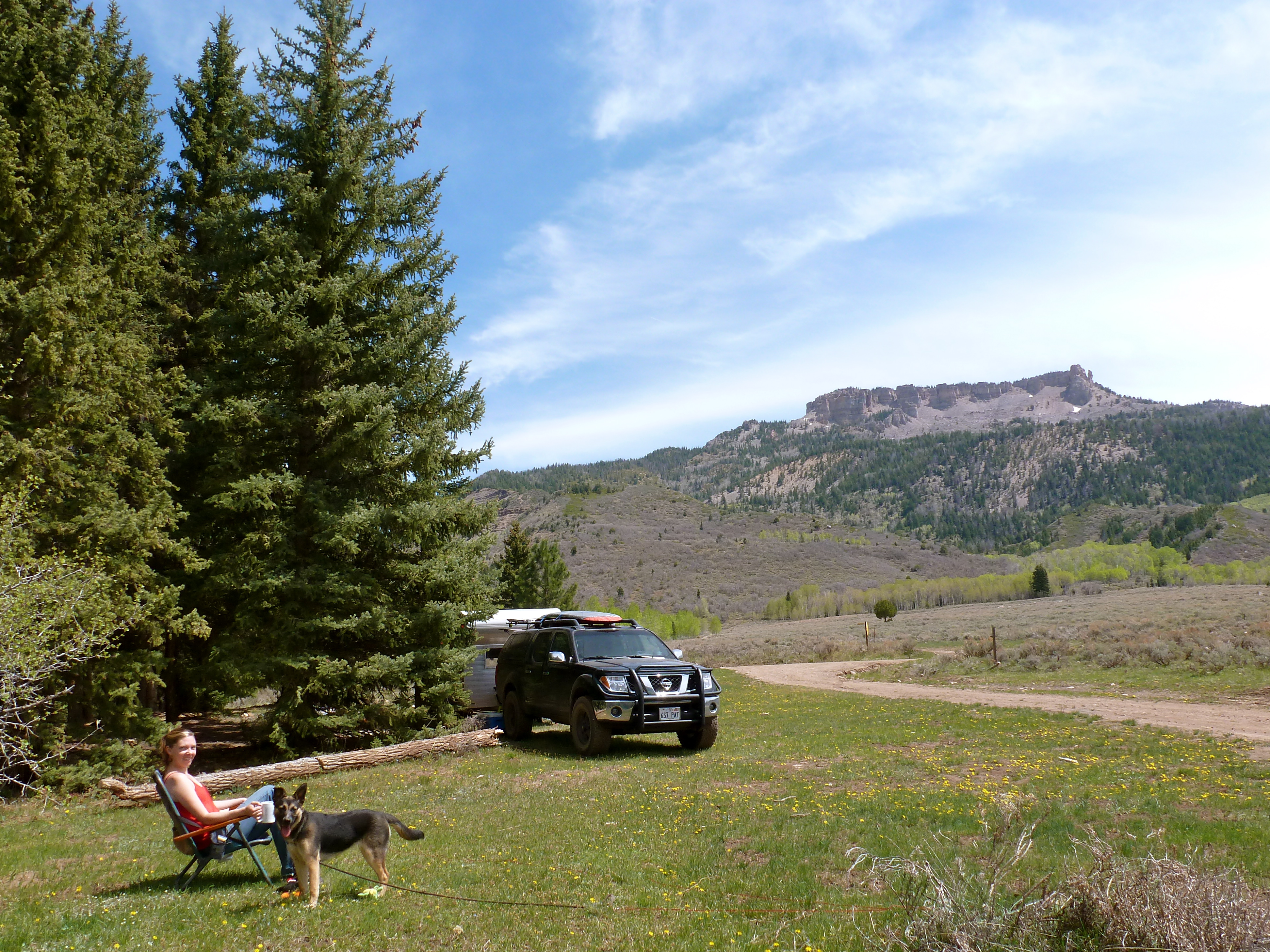 We were a tad early for camping at 8000 feet, but the aspens were starting to get green and the weather was ideal. Reggae on the stereo, John singing along, 45 pounds of puppy in my lap- it was a lovely drive.