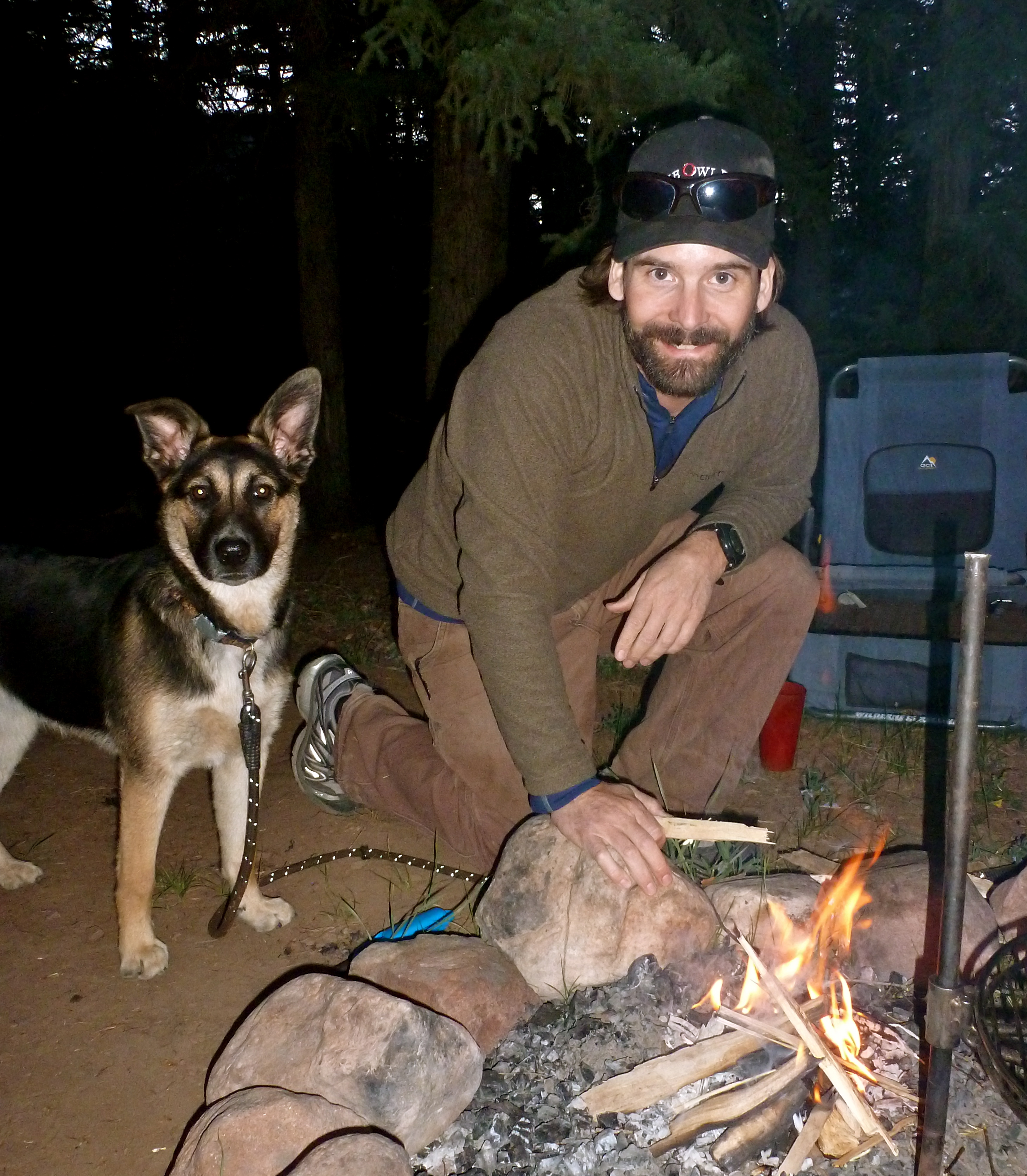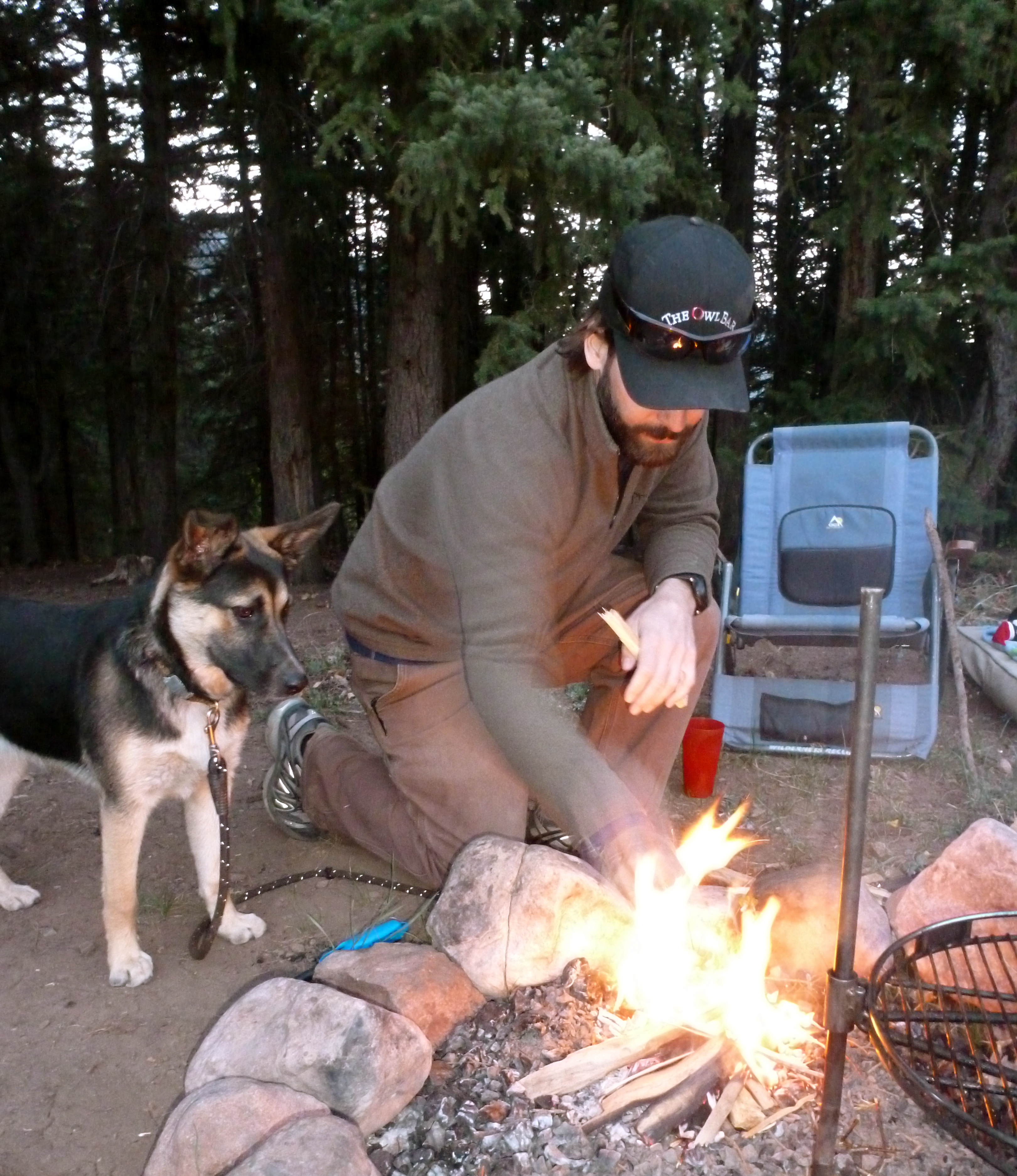 John is something of a mountain man. He splits wood with an ax just like my Dad (flexing and all), and makes an awesome campfire (teepee then log cabin). He enjoys the process of setting up a perfect camp space, tending the fire, grilling food to perfection. He can spend hours fishing on the river. He strums the guitar by firelight and points out different stars. He loves camping, too. Which is one of the reasons I love him.