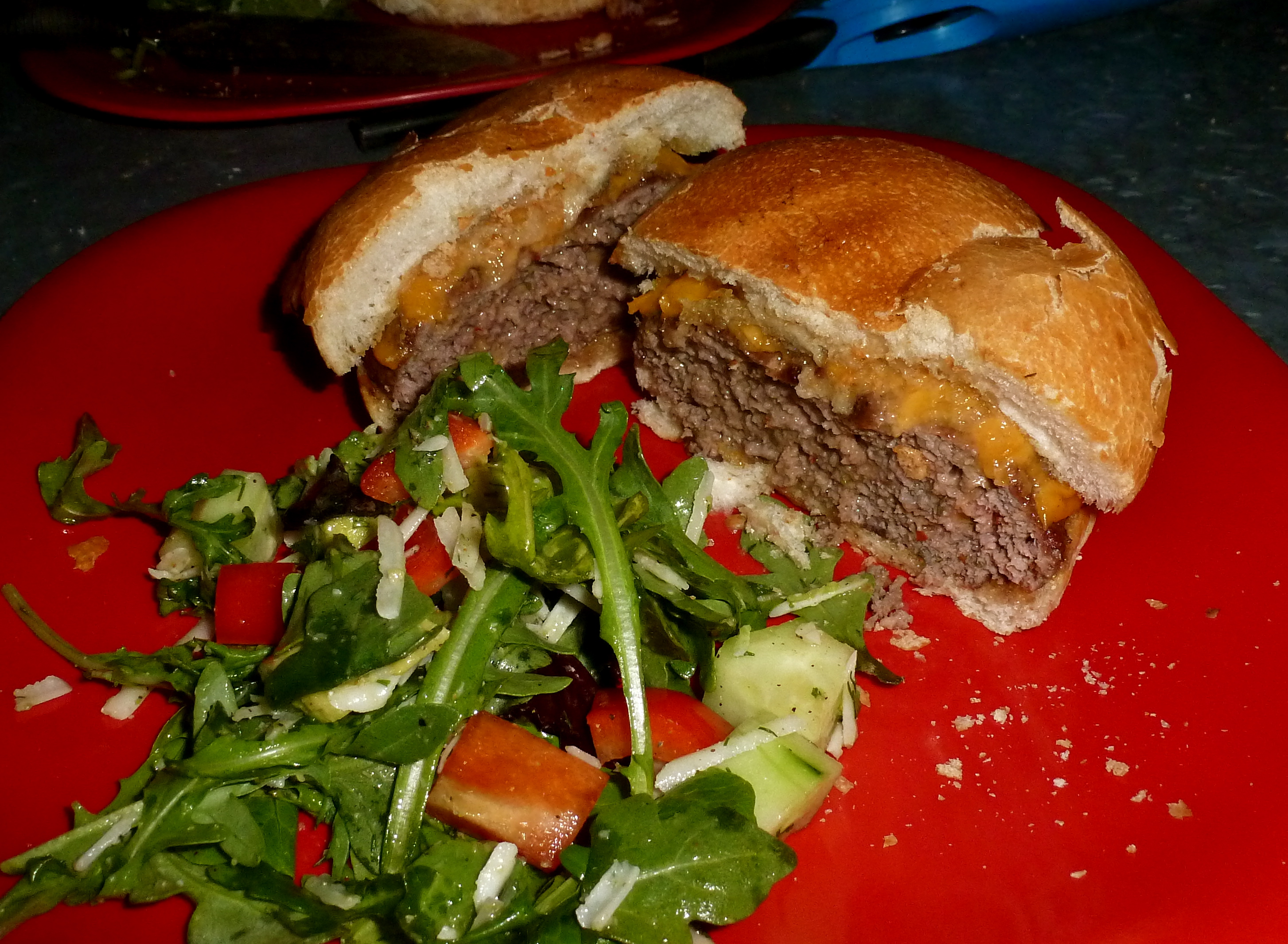 I prepped the burger fixings and salad by the light of a mini lantern, then sat toasty and content near the fire while dinner cooked.