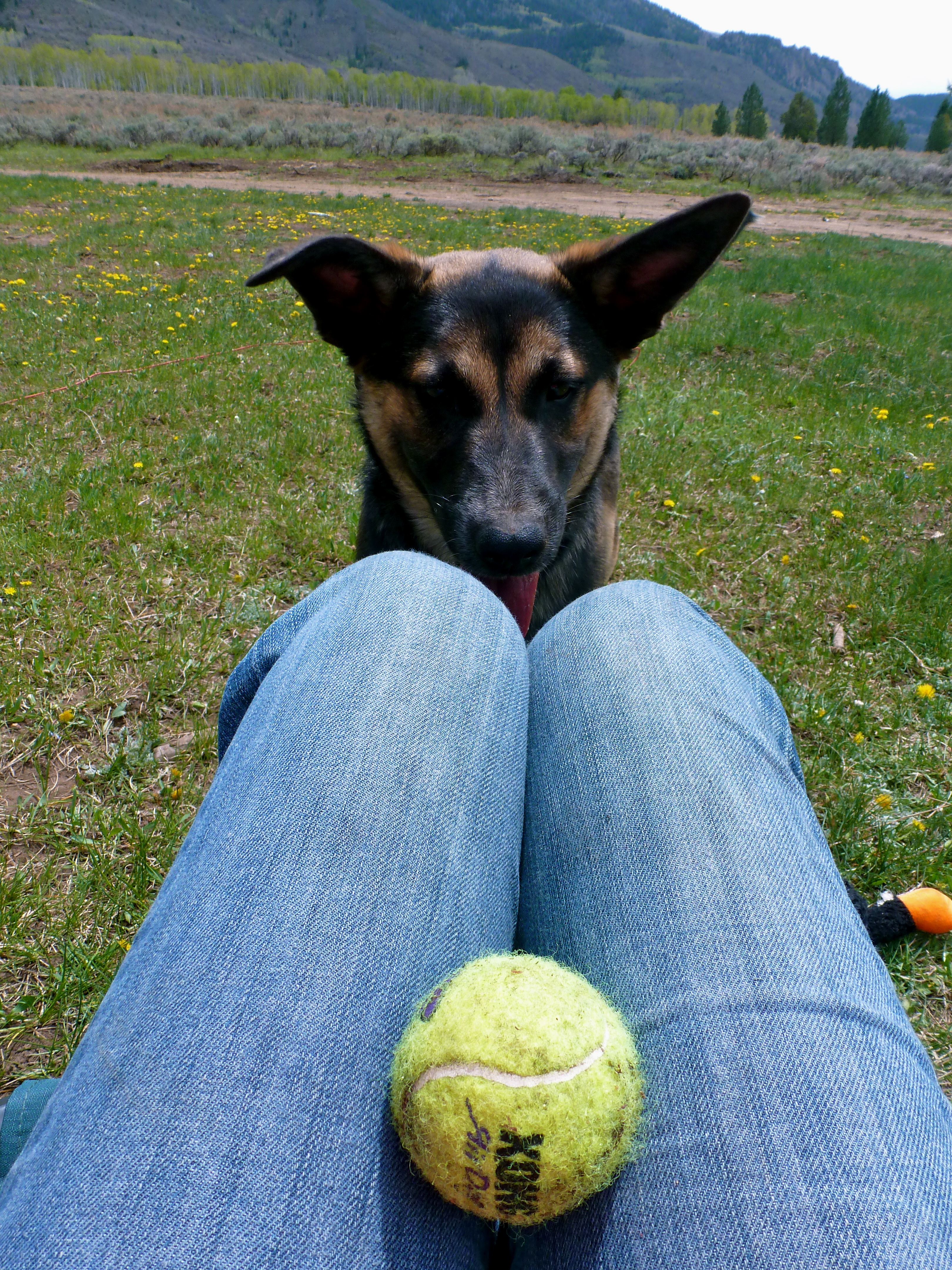I love the photo of your dog with the ball in your lap, that is SO my little dog! He drops it, backs away a few steps, and then stares like that! Camping looks like so much fun, all ours is done with Cub Scouts. In tents. Yay. LOL