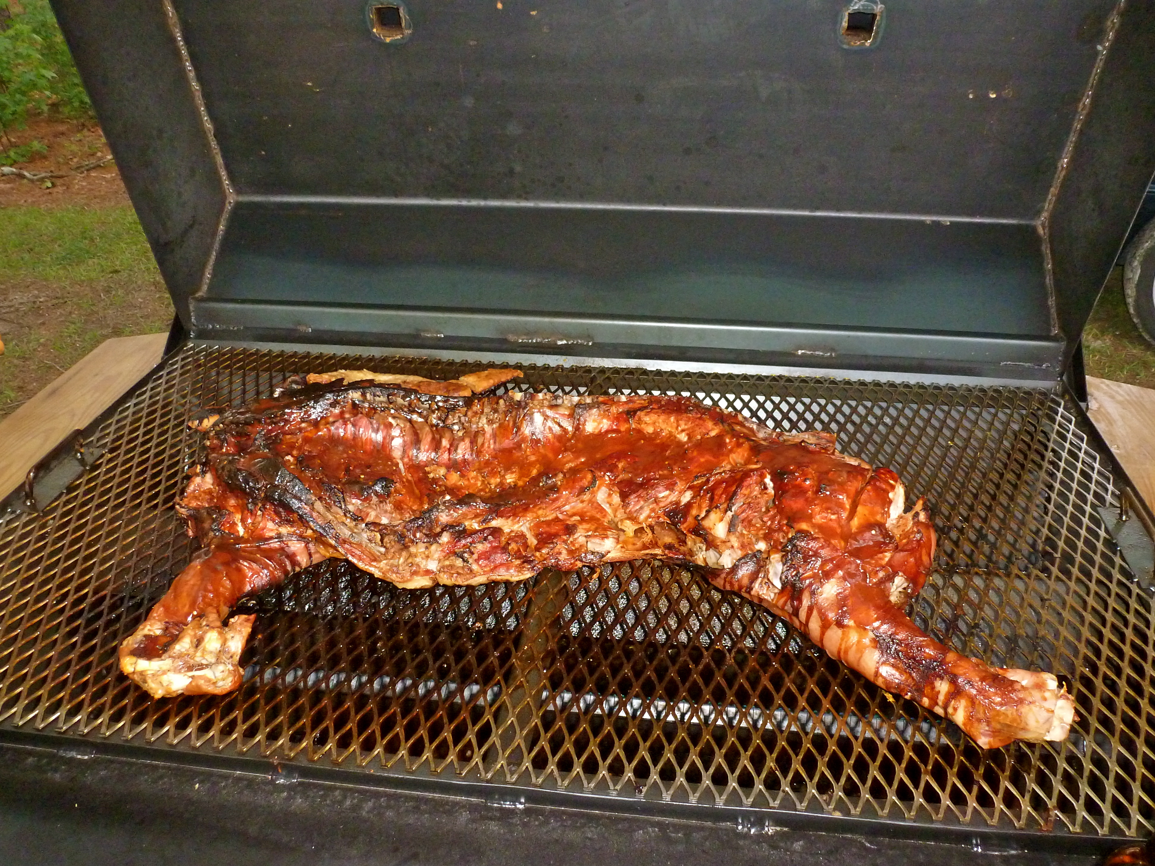 If John and I thought we’d had good Southern BBQ the day before, we were in for a treat. A family friend spent the entire day tending to the hog-cooker, a contraption I’d never seen but was aptly named.