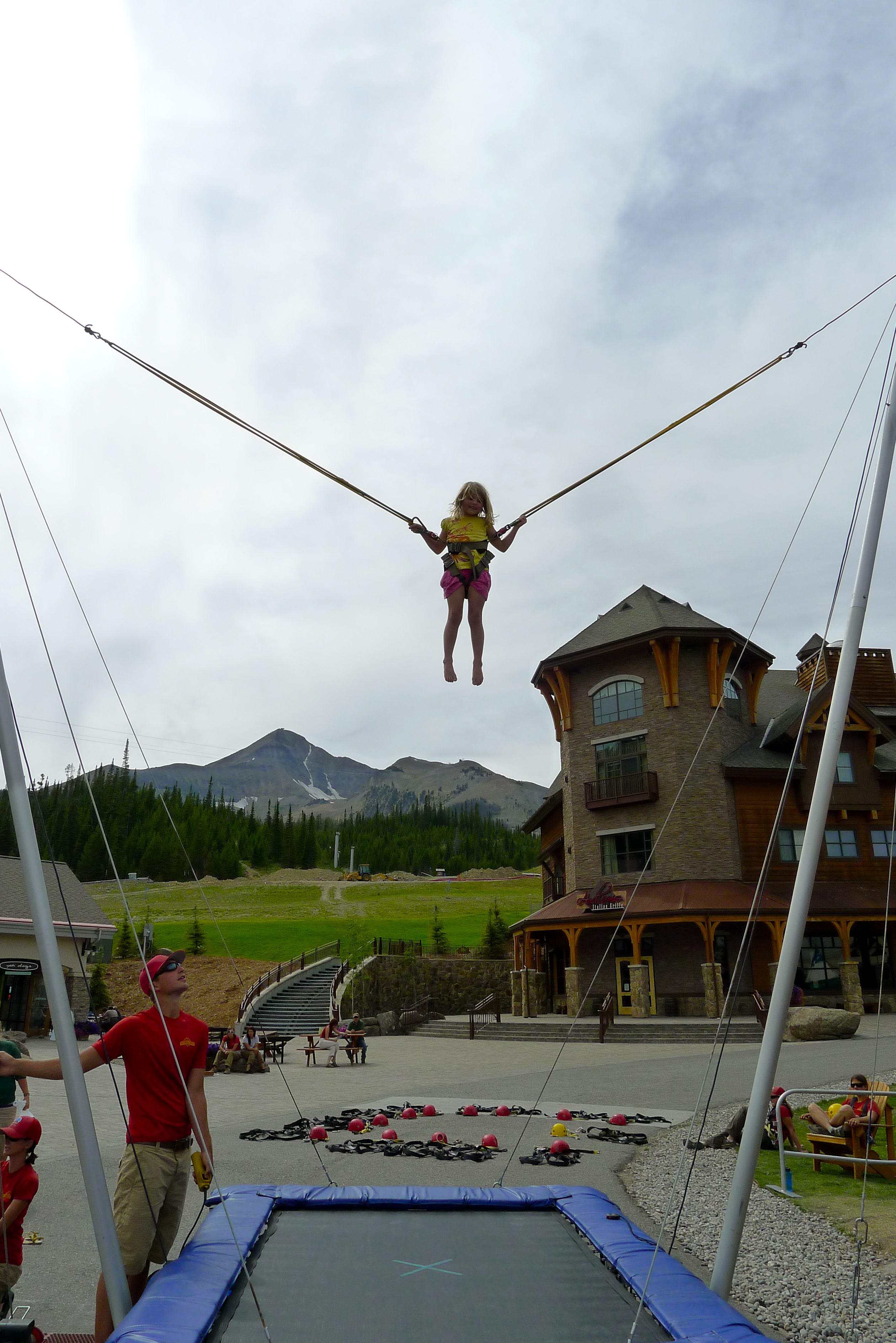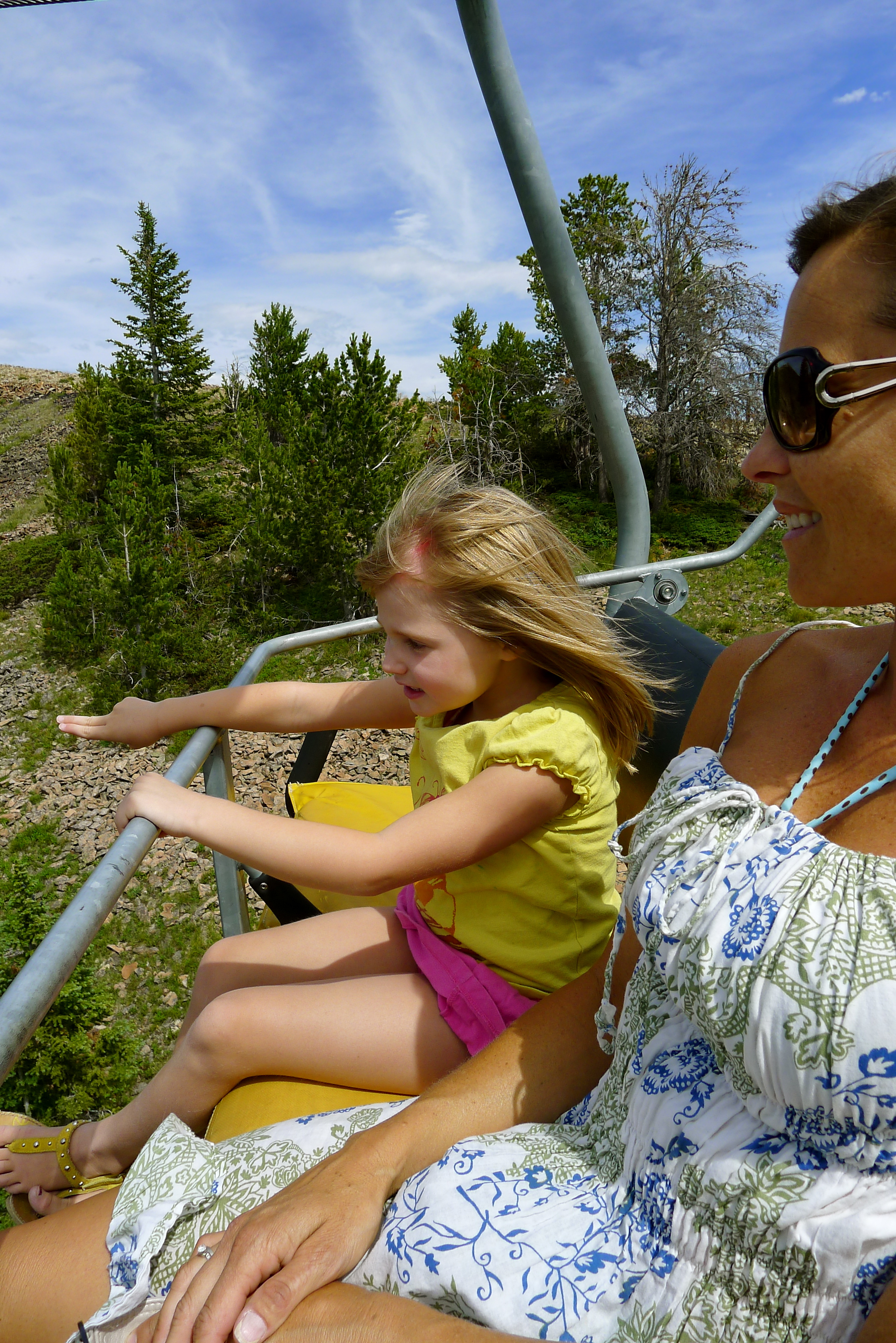Our next trip to Bozeman was last year, our first stop on our 5-week road trip towing Betty. July 4th weekend of 2010 was going to be hard to beat, but we sure came close. We escaped for a night at Big Sky Resort, stopping off along the way to grill dinner under the pine trees. In the morning, the ladies chilled by the pool and rode the ski lift with Sydney while the boys golfed.