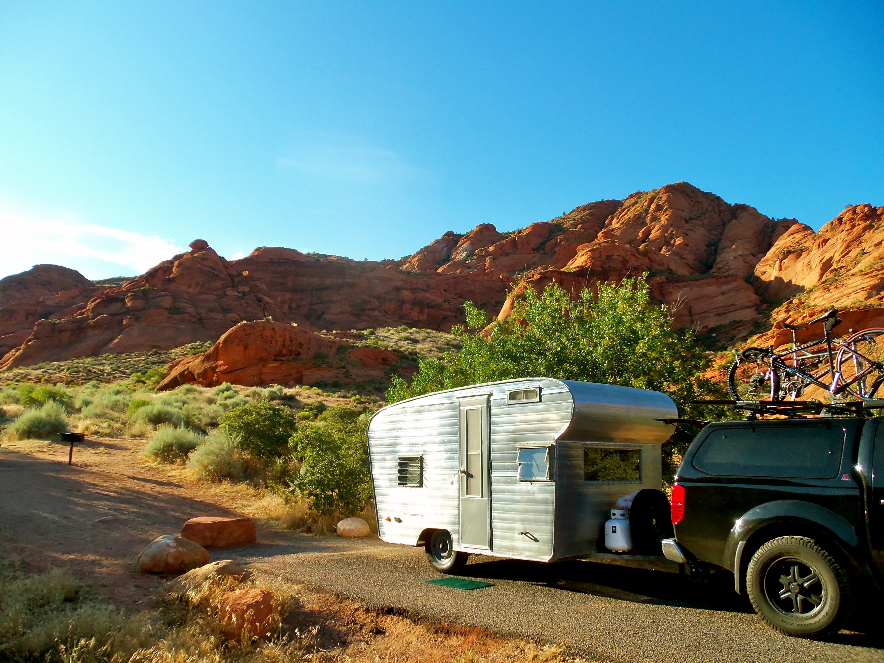 As we pulled out of the dipping driveway, something scraped the asphalt and my hands clenched. I remained rigid for awhile, gasping at each bump, frantically checking the mirror to make sure the trailer was ok. I was like the parent of a newborn, over-anxious about every tiny thing, positive something must be wrong. But after a while, the smooth open road calmed me (to John’s relief). I enjoyed the drive into Southern Utah. We were really doing this!