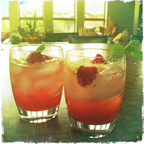 Next, we muddled some plump fresh raspberries with mint leaves and lemon juice. Vibrant colors and the tart scent of the lemon were impossible to miss. This was getting good.
