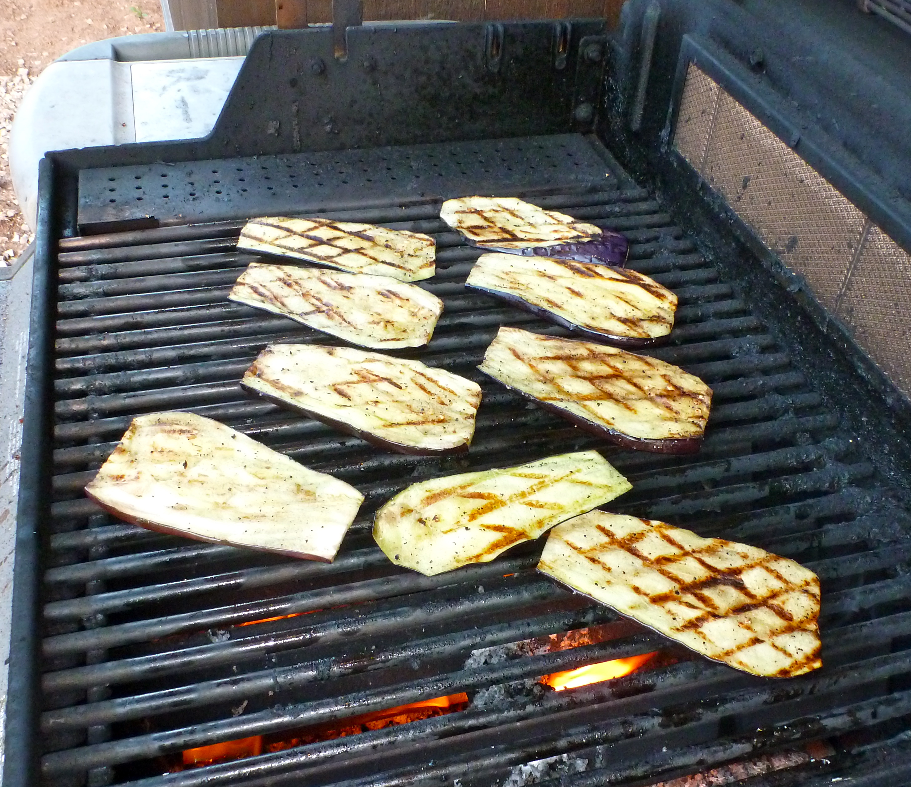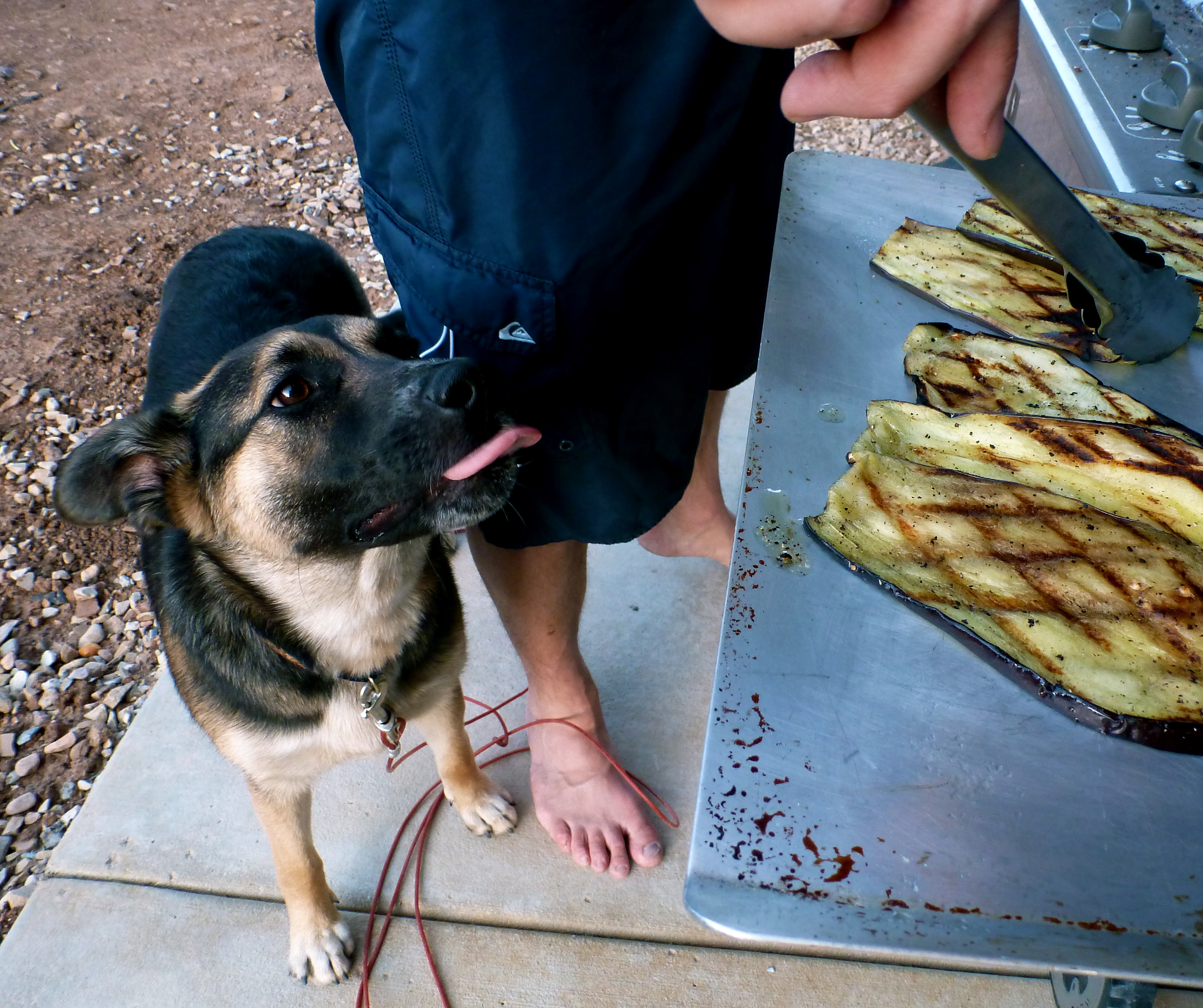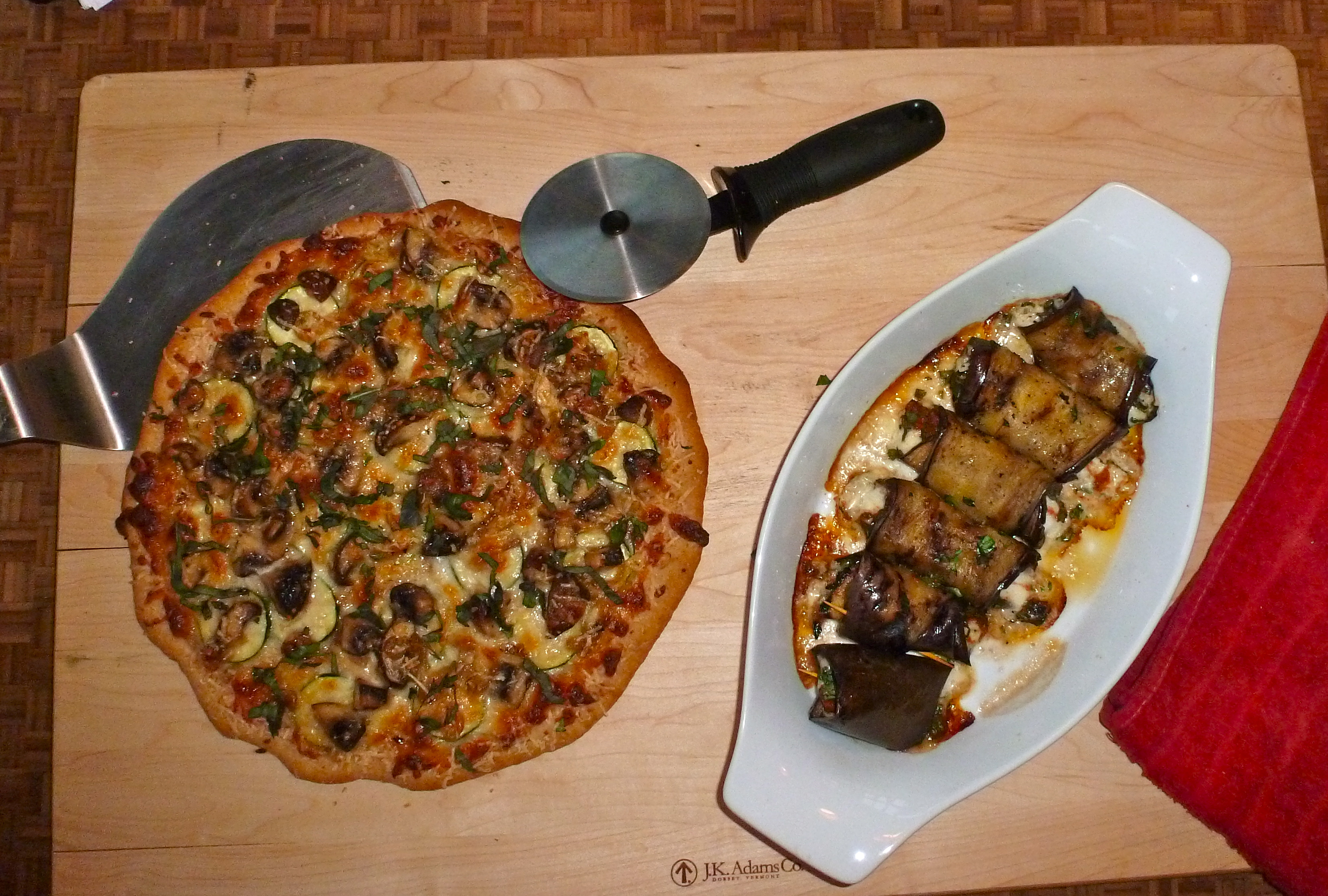 Last week, I forgot about Meatless Monday. This week, we doubled up. John (and a hungry assistant) grilled an incredible halibut dish on Sunday, and he showed me how he makes eggplant involtini. Scrumptious.