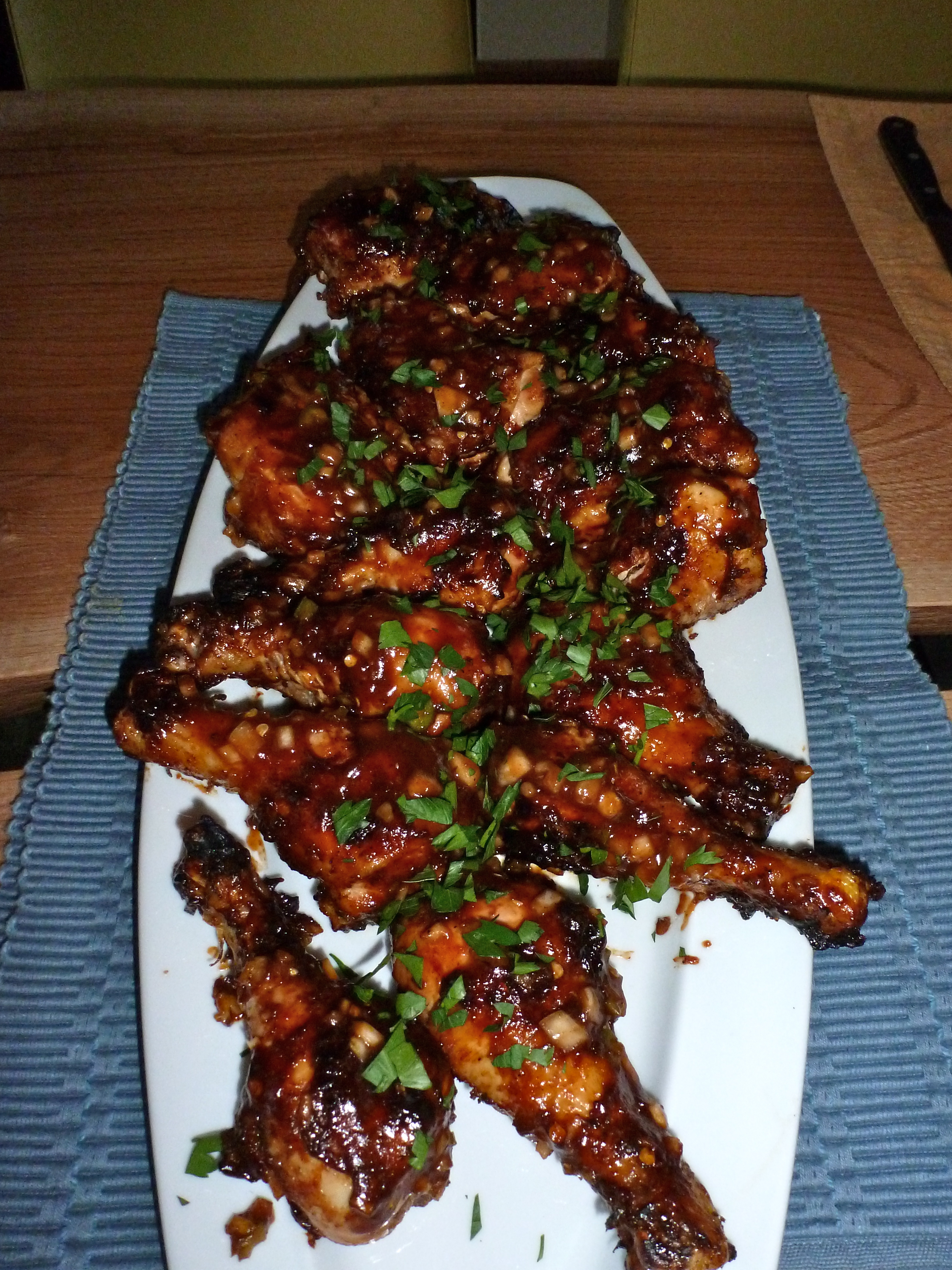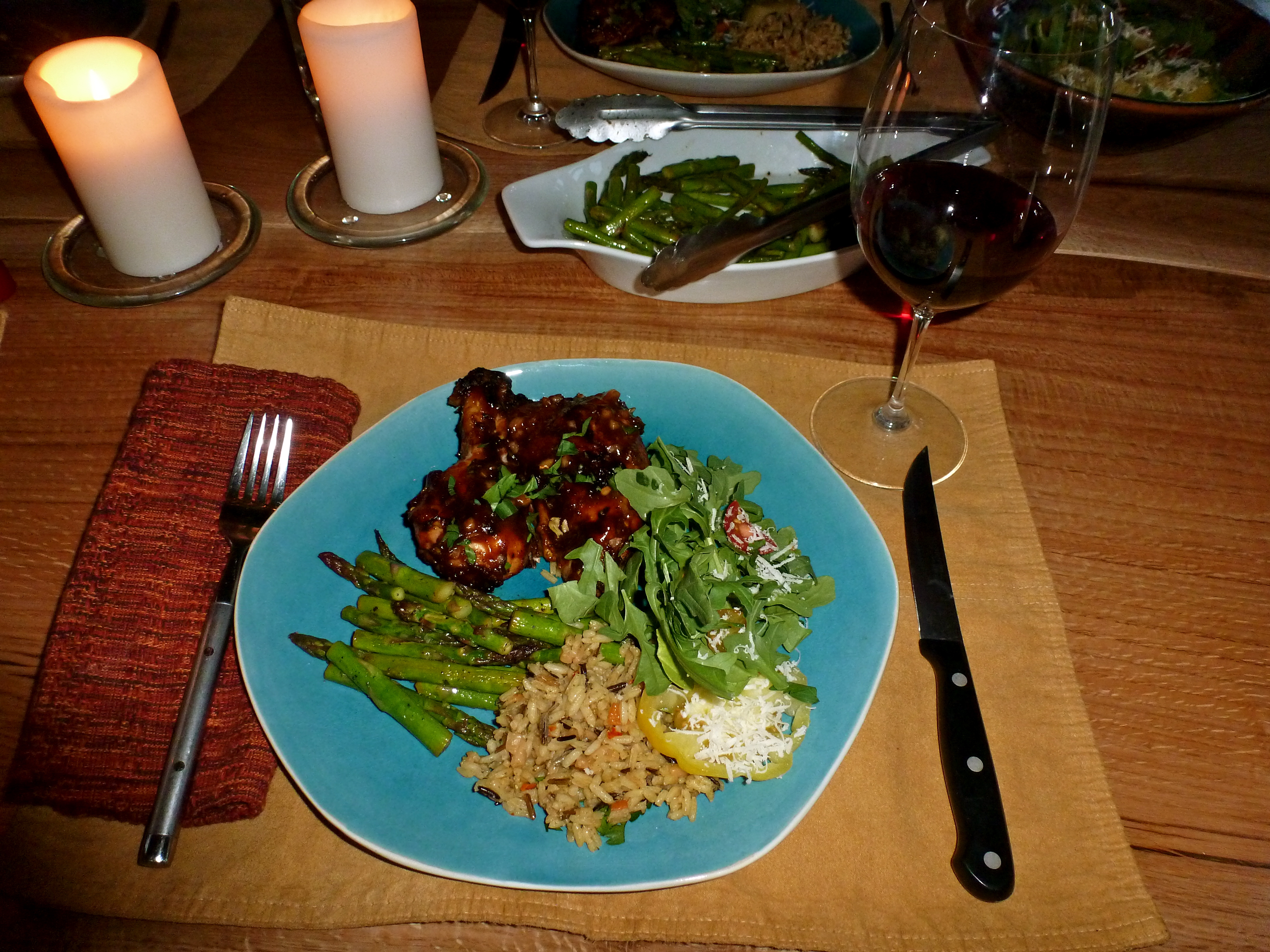 John grilled up a batch of his signature spicy BBQ chicken and we enjoyed a fantastic meal at the grown-up table.