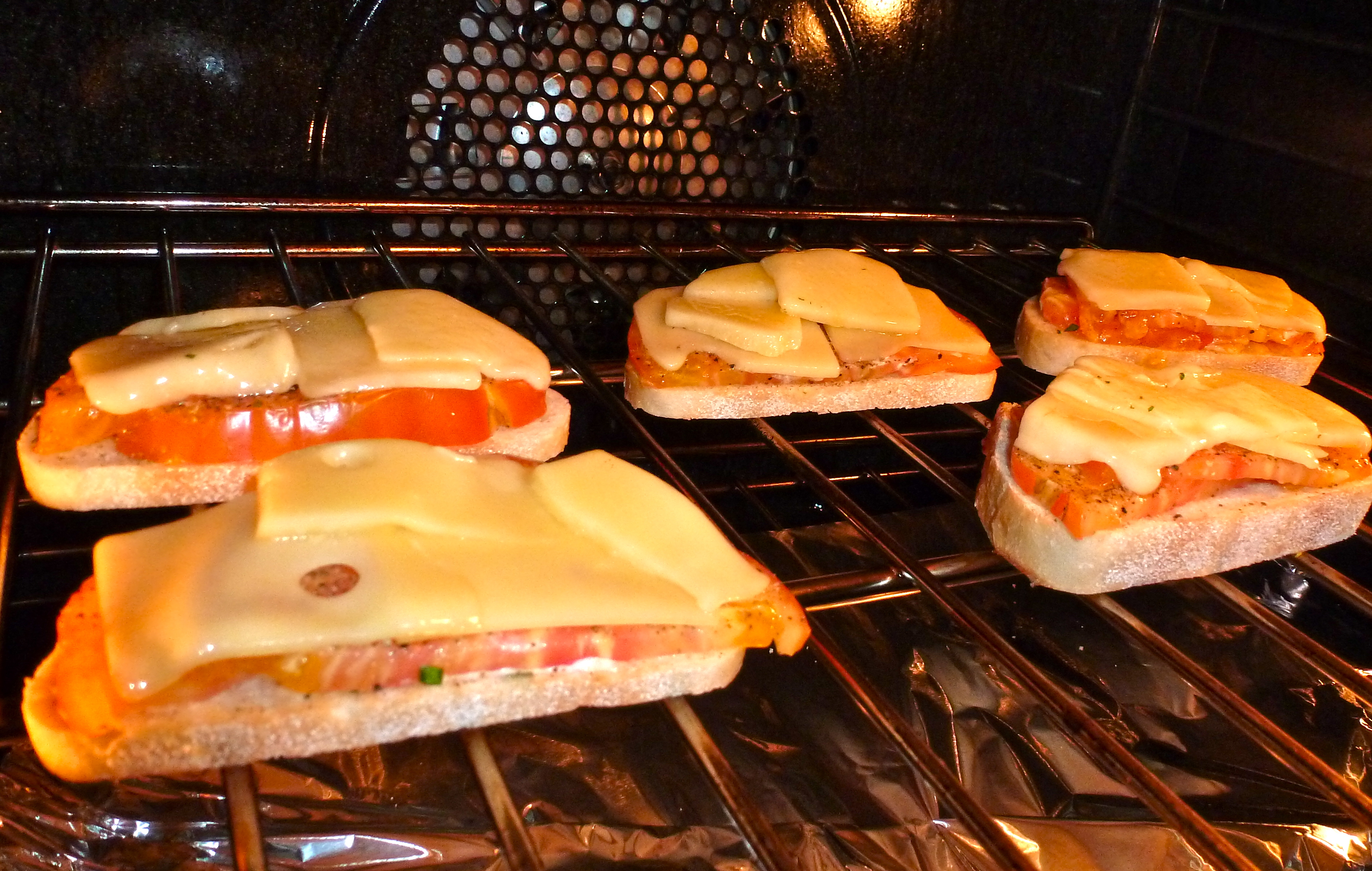 Thinly sliced crusty bread, sharp cheddar cheese, and a good tomato- that’s all you need. We like ours open-faced, broiled to melty deliciousness, and topped with cracked pepper, a little garlic salt, and whatever fresh herbs are in the garden. We call them tomato toastettes.