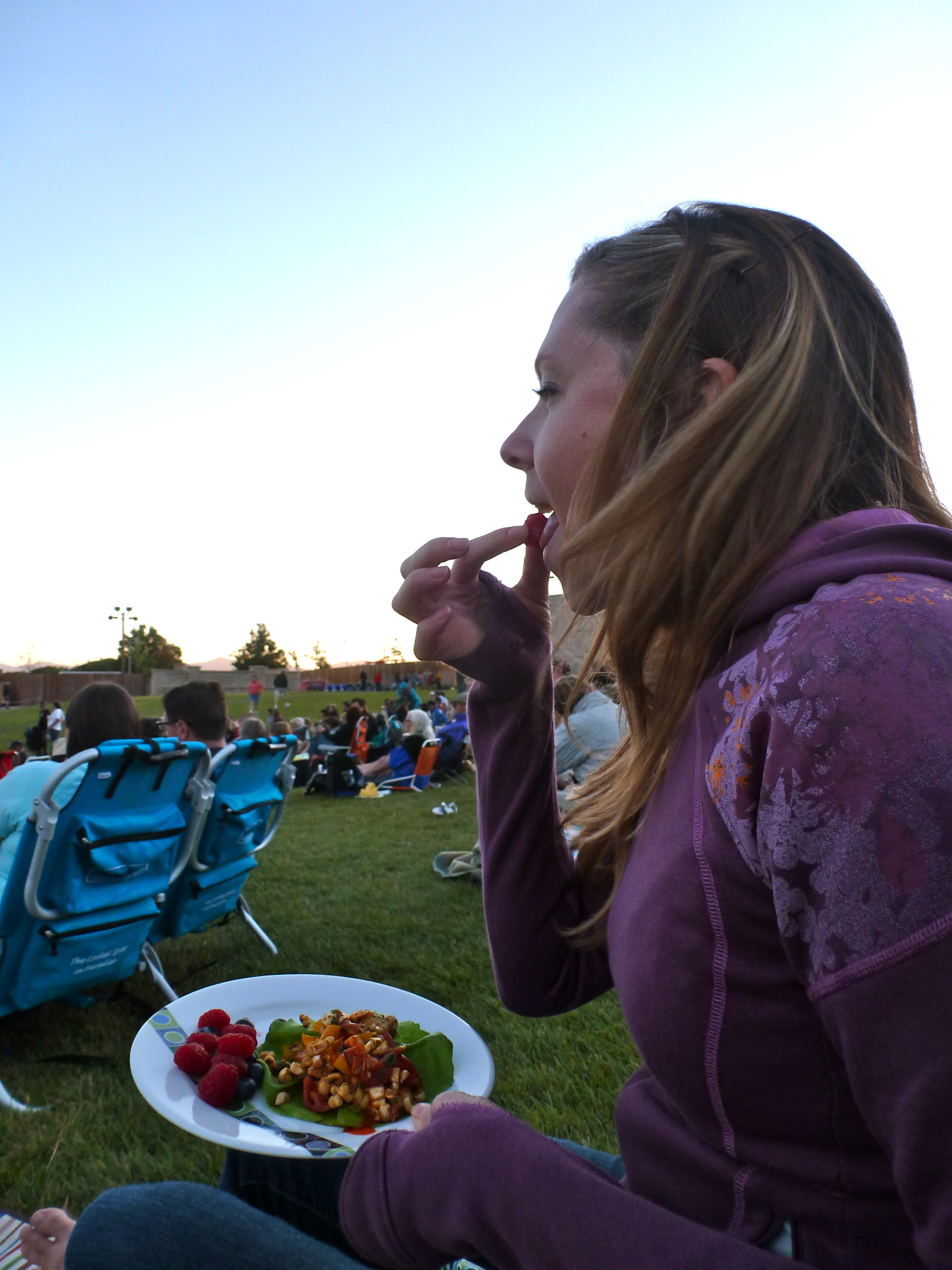 A berry good bite at an outdoor movie.