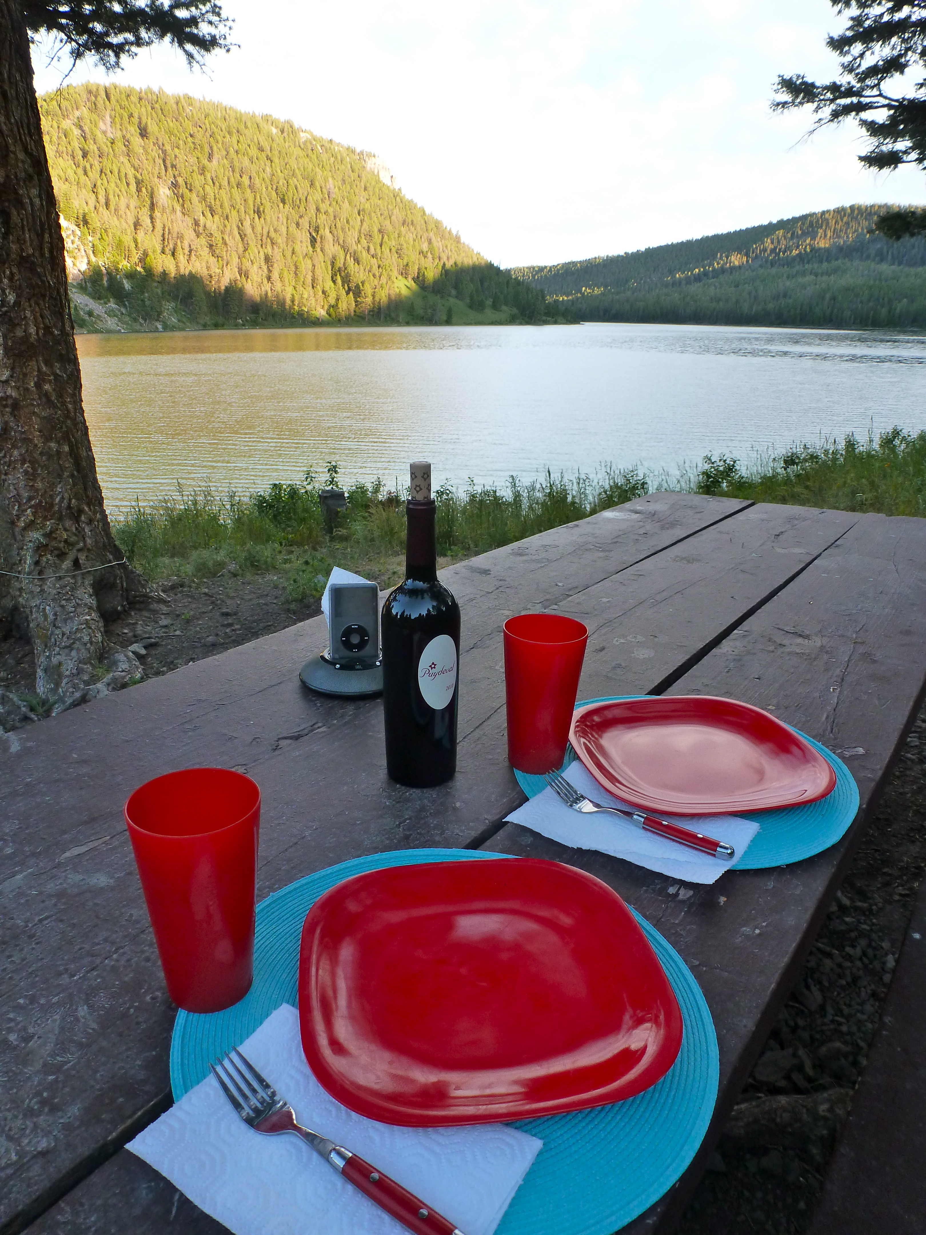 1. Let’s see, just outside of Ennis, Montana is a dirt road to Three Dollar Bridge (popular with fishermen). Further on are three campgrounds, Wade Lake, Cliff Point, and Hilltop. We ended up at Cliff Point, site #1. MONEY.