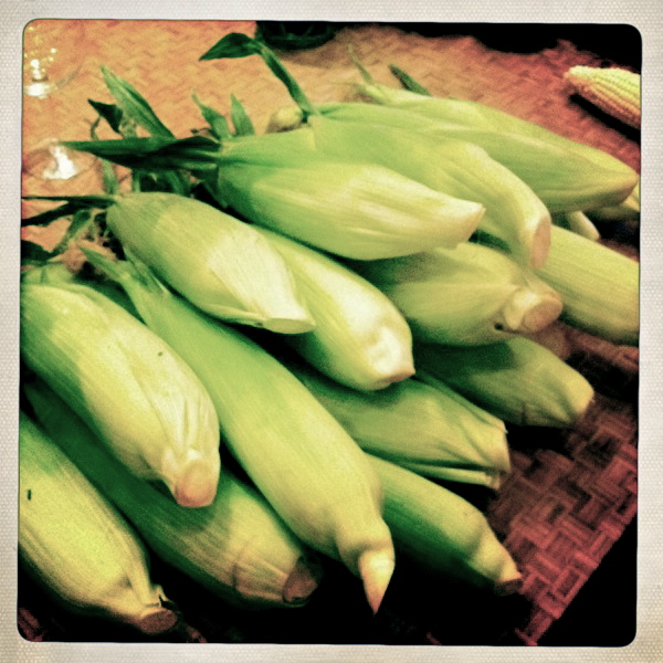 The pies cooling, I started in on the pile of corn. It didn’t take long to shuck 25 ears, and I paused in the middle for some dinner and more wine.
