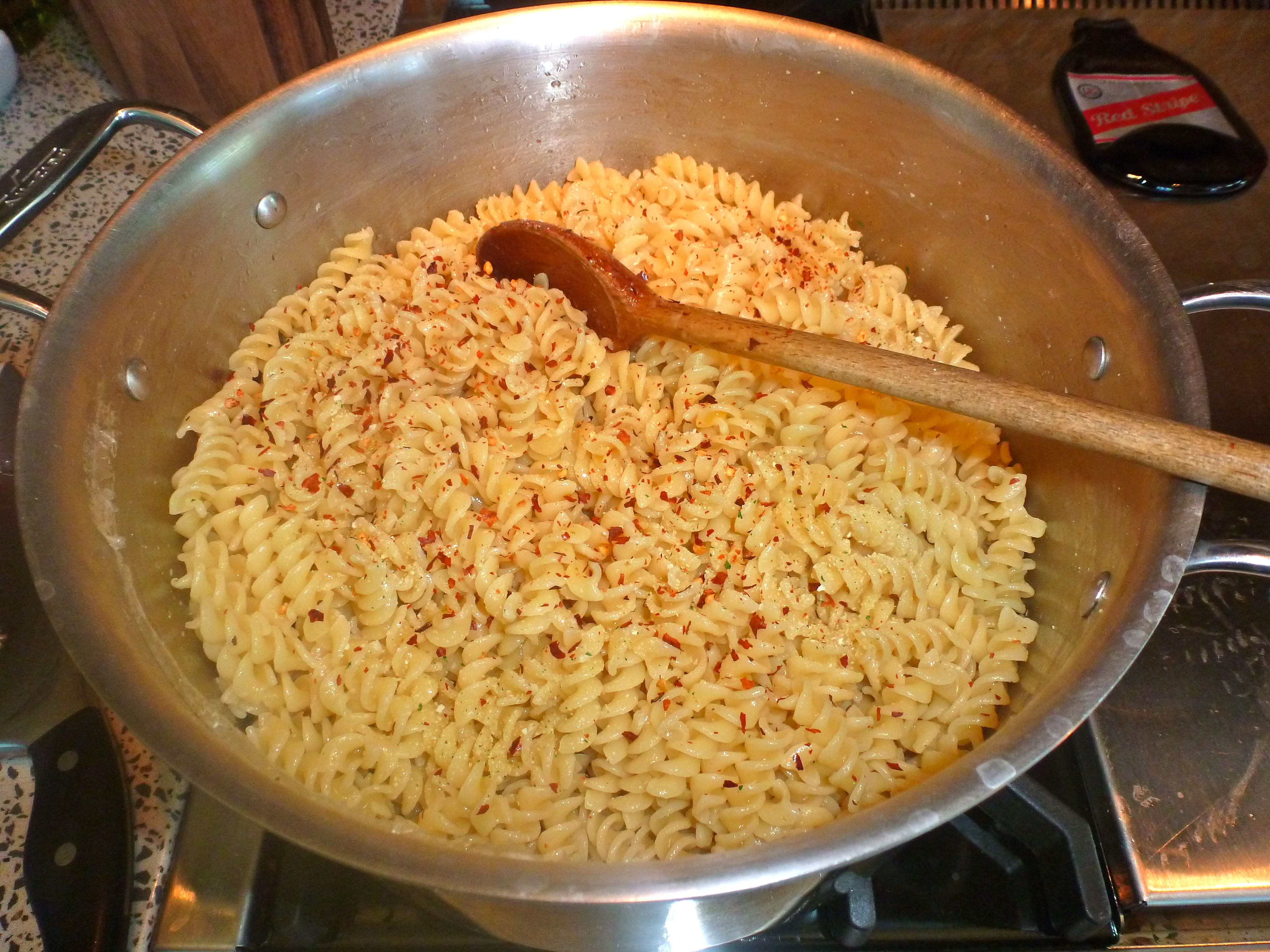 I use the oil in the sundried tomatoes to coat the noodles. Pre-seasoned for you! I add in garlic salt, crushed red pepper, and cracked black pepper. This dish is always a hit and it’s so simple to make- two thumbs up!