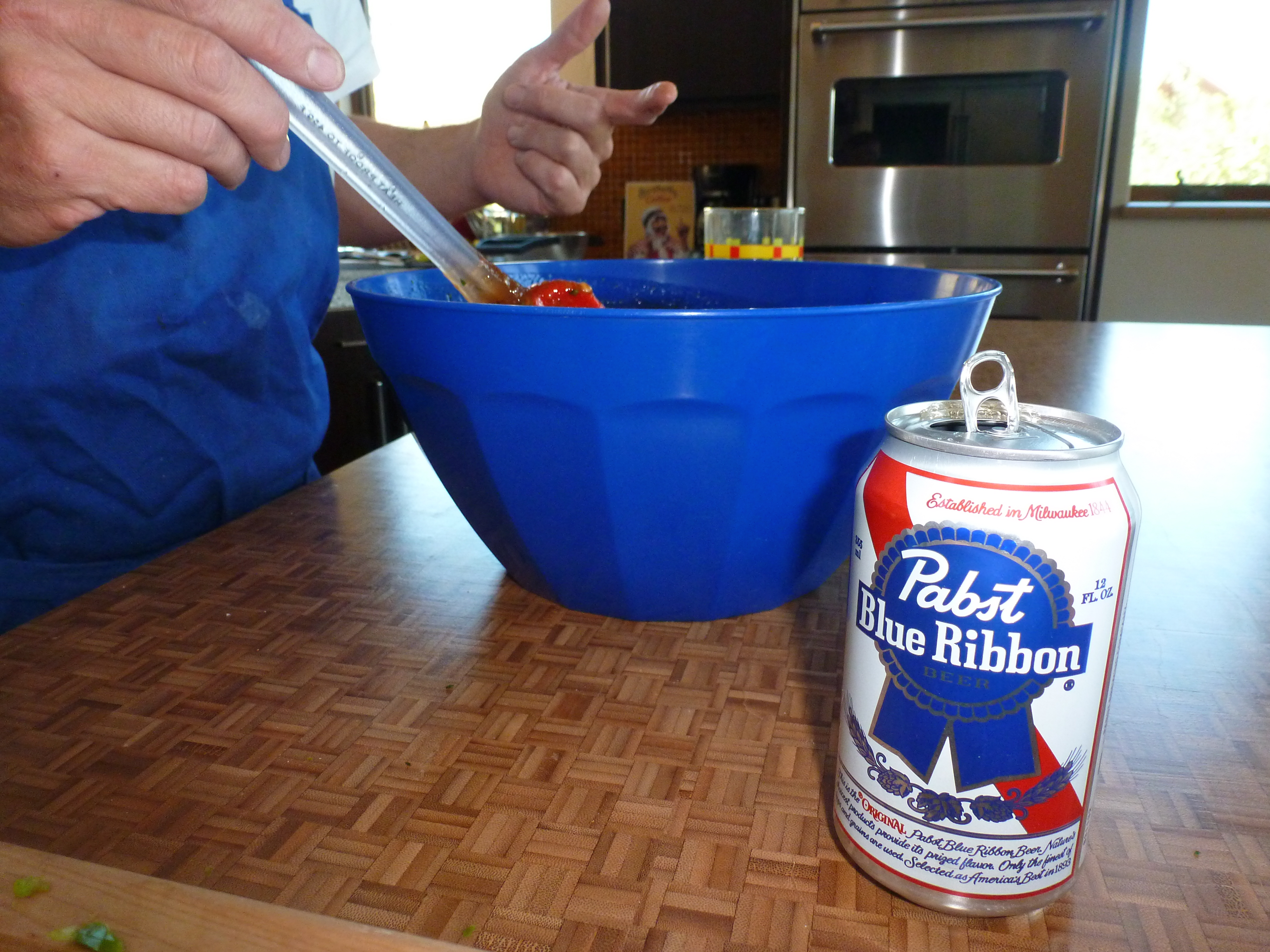 I’m happy to report that we got everything on our lists done- I was slicing the baguette as the first guest arrived. The party was a huge success– plenty of good drinks, awesome food, happy kids, and laughing grown-ups. A beer or two may have been shotgunned. The only casualty was one broken shot glass (and the tiny pink sandal that Cholula destroyed). Not bad for 35 people! As predicted, people freaked about the pie- and the chicken. I met a few new fun people. There were no fireworks due to the ban, but no one noticed.