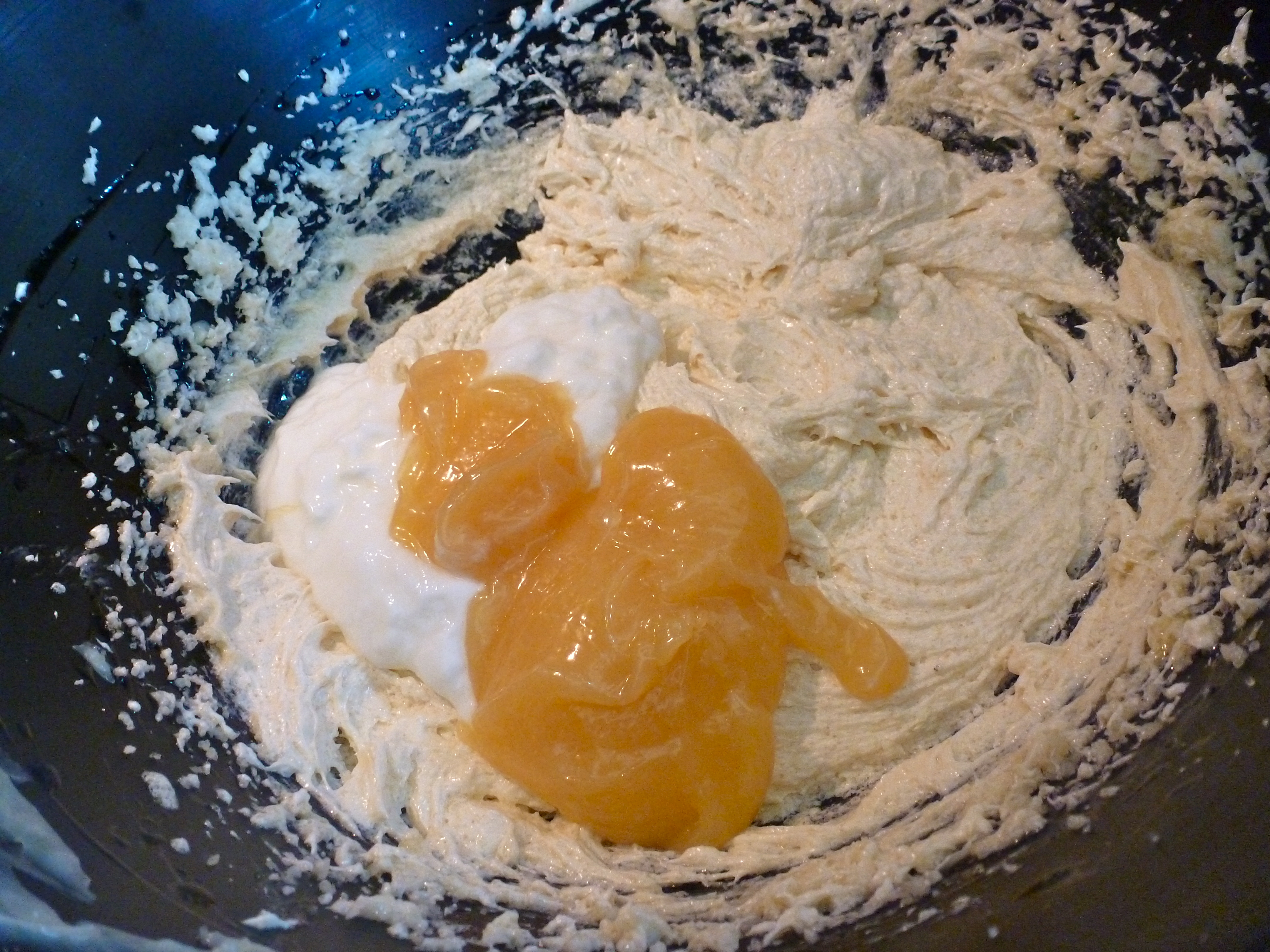 The jar of yellow sweetness procured, I poured myself a glass of lemonade and got to work on my new recipe. The cake batter started to come together, despite some spills along the way.