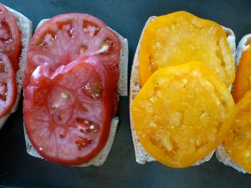 I cannot wait for heirloom tomatoes. Every Saturday, when we visit the farmers’ market we hope that “this will be it… the Saturday when they will be here”…yet, no sign of them! 😦 Last year we lost half of the season because of the hurricane. All I want is a tomato salad with mixed herbs and a grilled cheese sandwich. Am I asking too much?