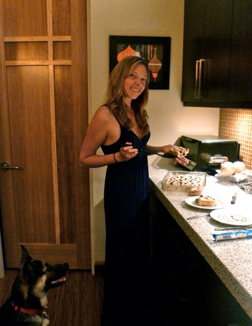 As the night’s end grew near, it was time for the moment of truth. Surprisingly, the cake hadn’t fallen into a flat, dense brick. It still looked like the photo. Do I look nervous?
