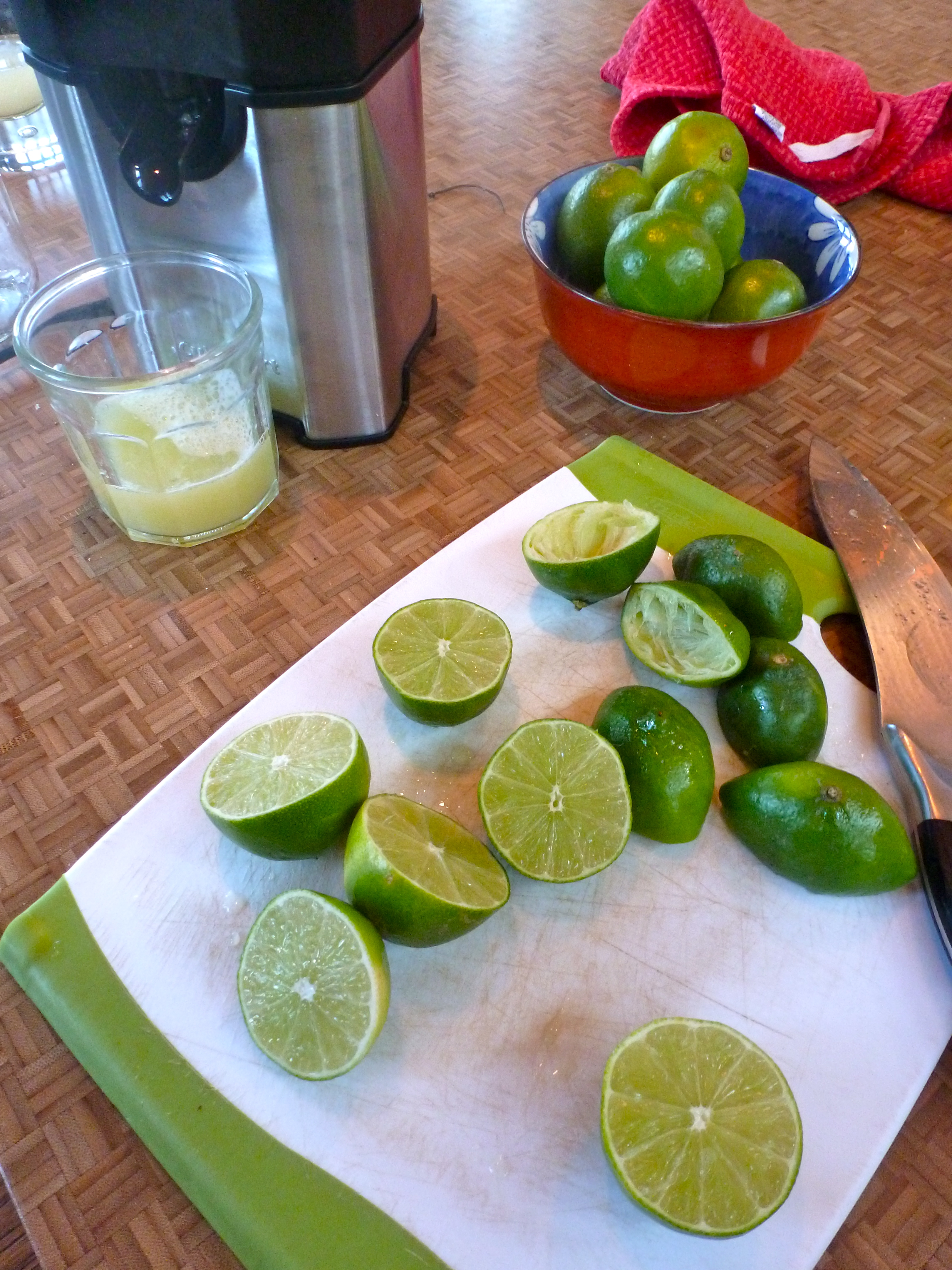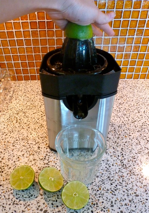 The mint steeping in the sugar water, I giggled like a schoolgirl as I brought out my latest love- the juicer. Juicing limes was a little more challenging than lemons, maybe because they are smaller. But it didn’t take long to have lots of spent lime halves and plenty of juice.