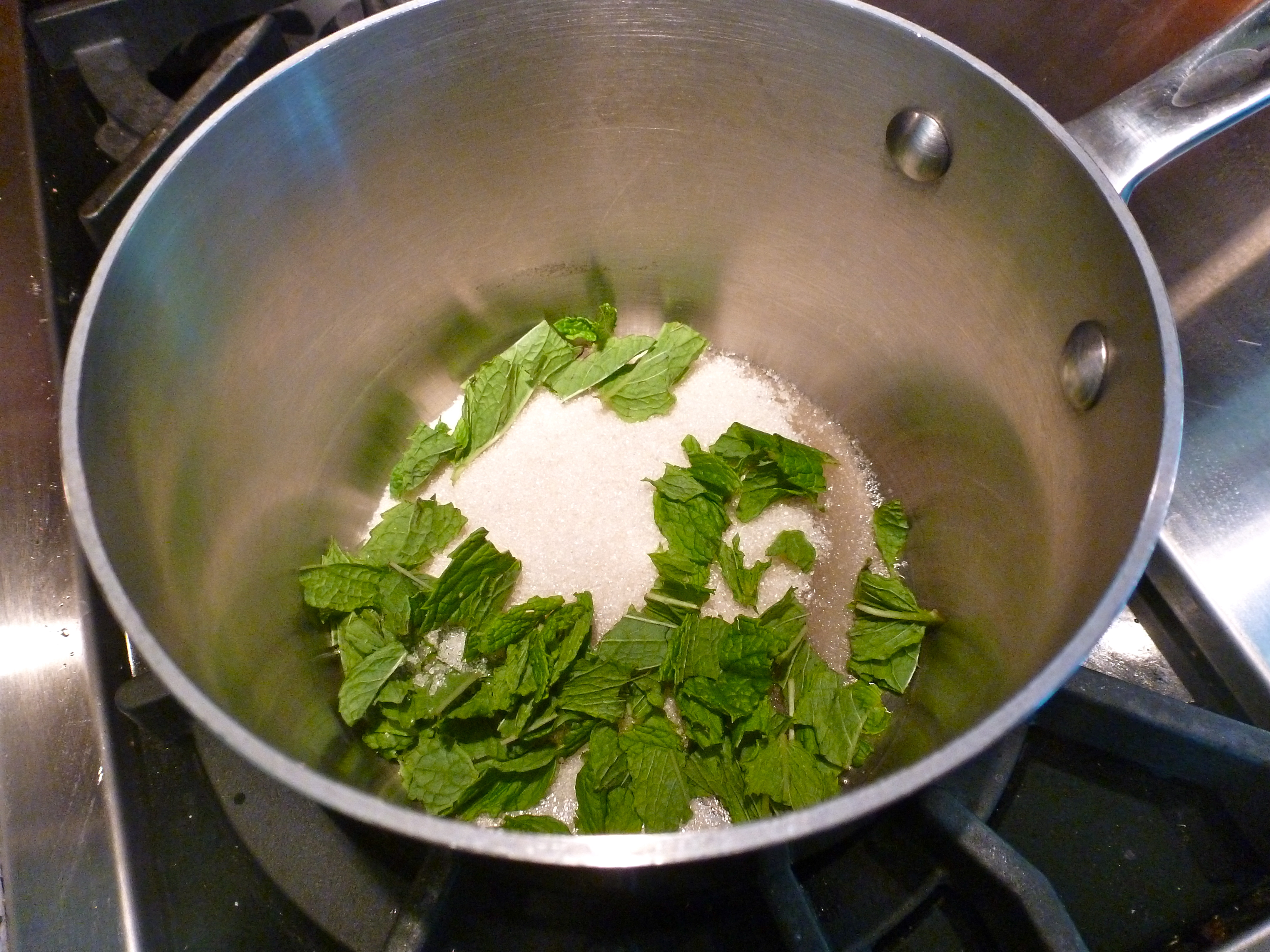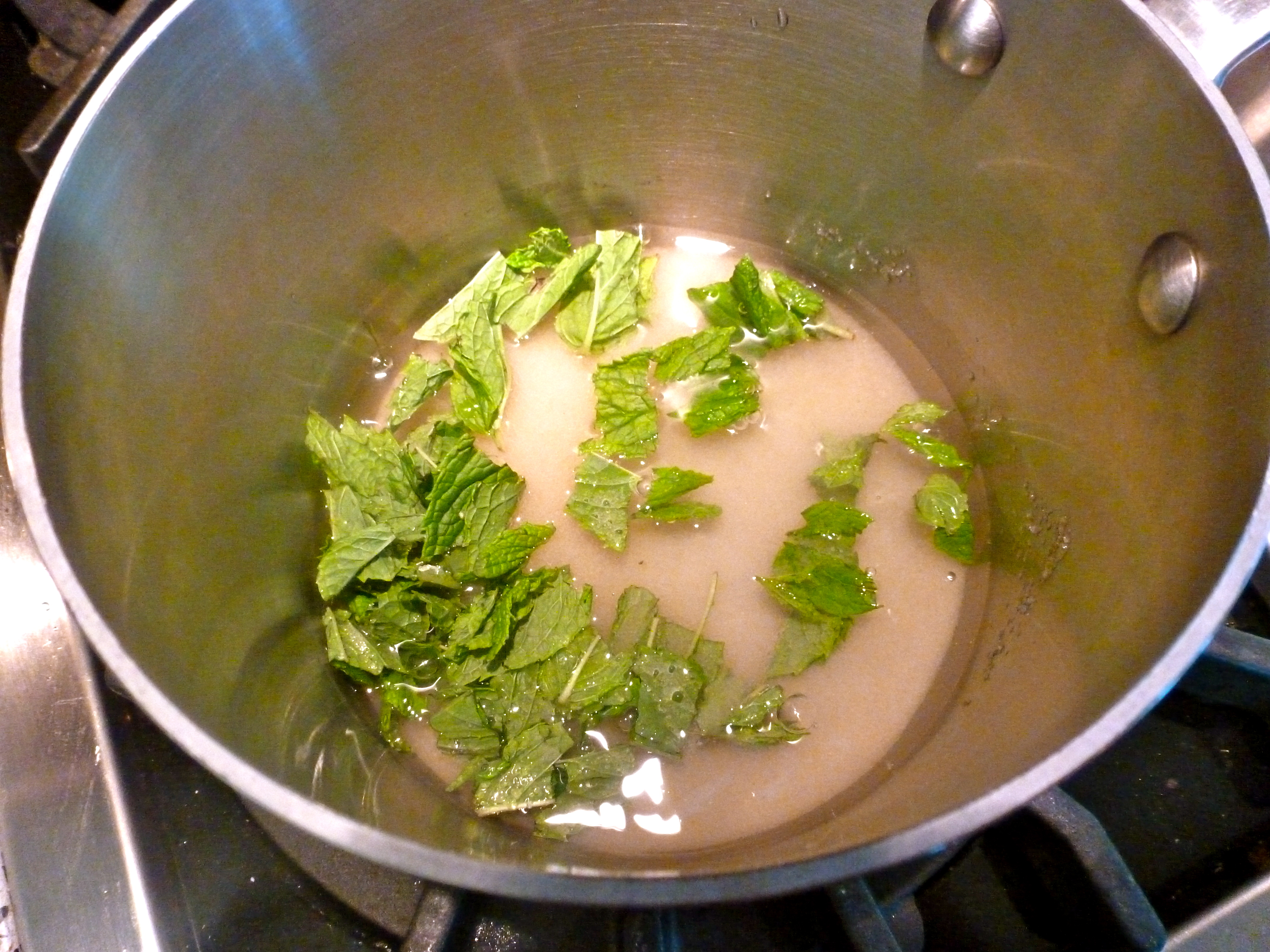 All summer, I’ve been making a simple syrup of honey, ginger, and rosemary for my lemonade. I figured I’d swap out the lemons for the limes, and make a syrup using mint. I opted for organic sugar instead of honey, simply because that’s what they used at the booth. There couldn’t be many more ingredients than that, except maybe love- and I always put that into my food!