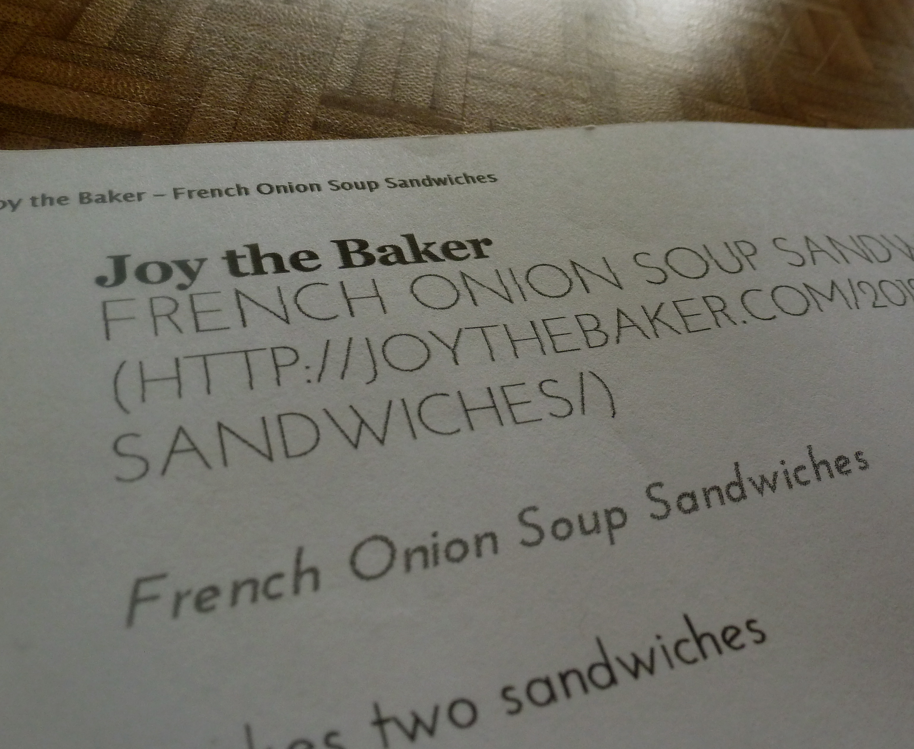 3. French onion soup is my favorite “comfort” soup, right after green pea and ham. Somehow, methinks onion soup sammies are more appetizing than the split-pea soup variety! I’ll have to try out Joy’s recipe. First, must get me some gooey cheese (I don’t keep any on-hand).