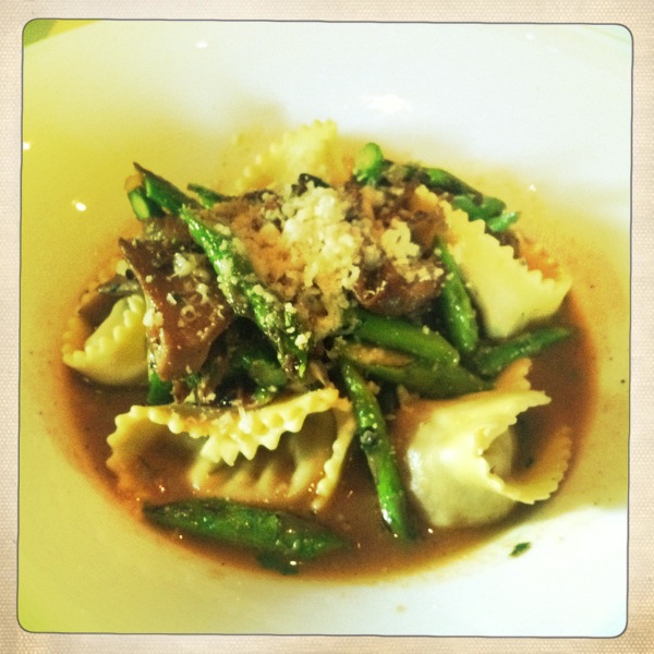 On Saturday night, we went on a little date to Ghidotti’s, an Italian restaurant near our neighborhood. We got our vegetarian fix (only two more days to go) with a couple of handmade pasta dishes. Oh, and an appetizer called “frico”- which is basically a skillet of hot cheese. Yes, please.