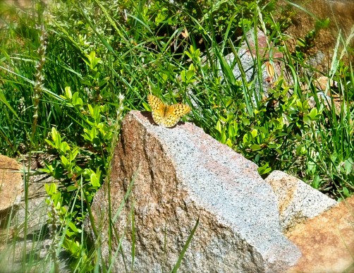 Butterflies and more wildflowers led us down the hill toward the little lake. We stopped to grab a towel and bathing suit, though my memory of the icy water was flashing through my mind.