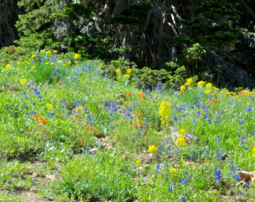 It’s interesting to note the amount of snow still on the mountains. I had forgotten about the insane rainbow of wildflowers still in bloom last July. Due to a horrible snowpack and early heat waves, we’re a bit further along in the cycle this year.
