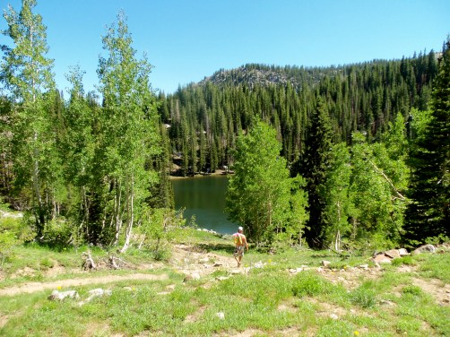 Those lovely patches of water below us are Bloods Lake and Silver Lake. I’d taken a dip in Bloods Lake the previous August, and let me tell you…melting snow makes for FRIGID mountain water.