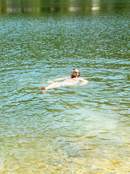 I watched John swim. His dip in the water was very brief- the chill forced him out as soon as he got in. (See the shock on his face?)