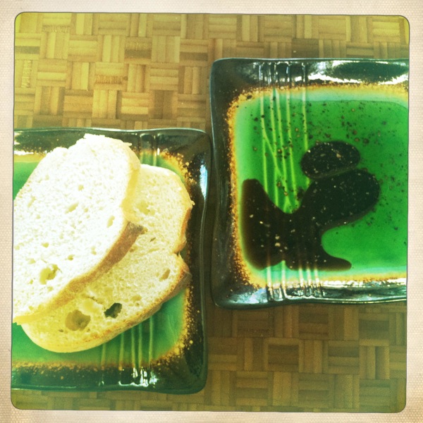 Crusty bread dipped in garlic-infused olive oil and balsamic vinegar. Yum.