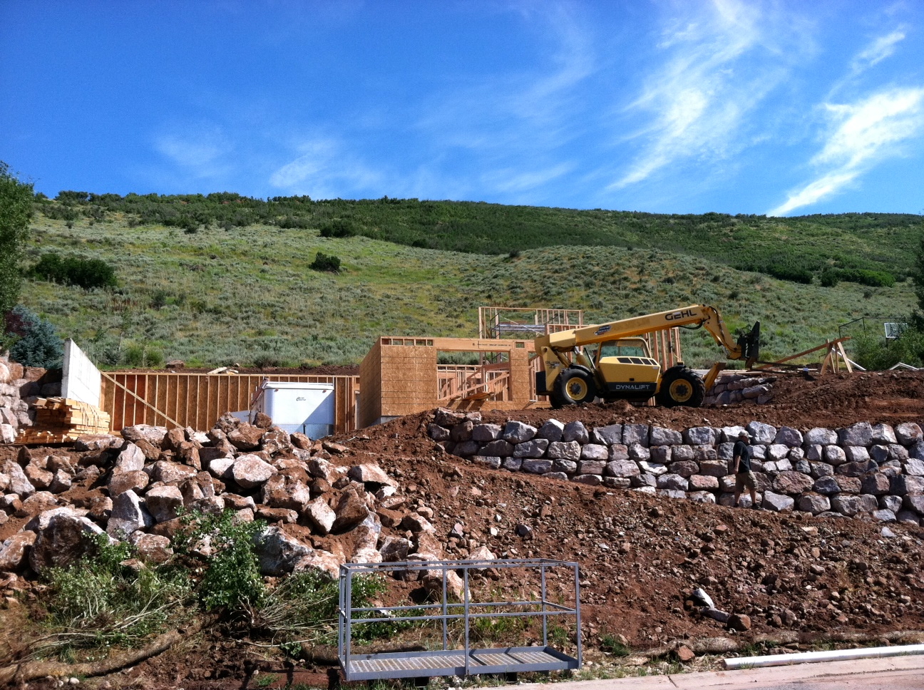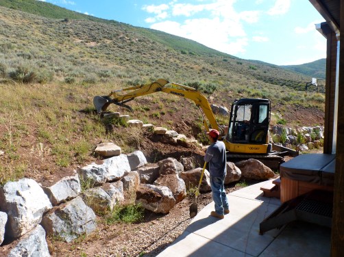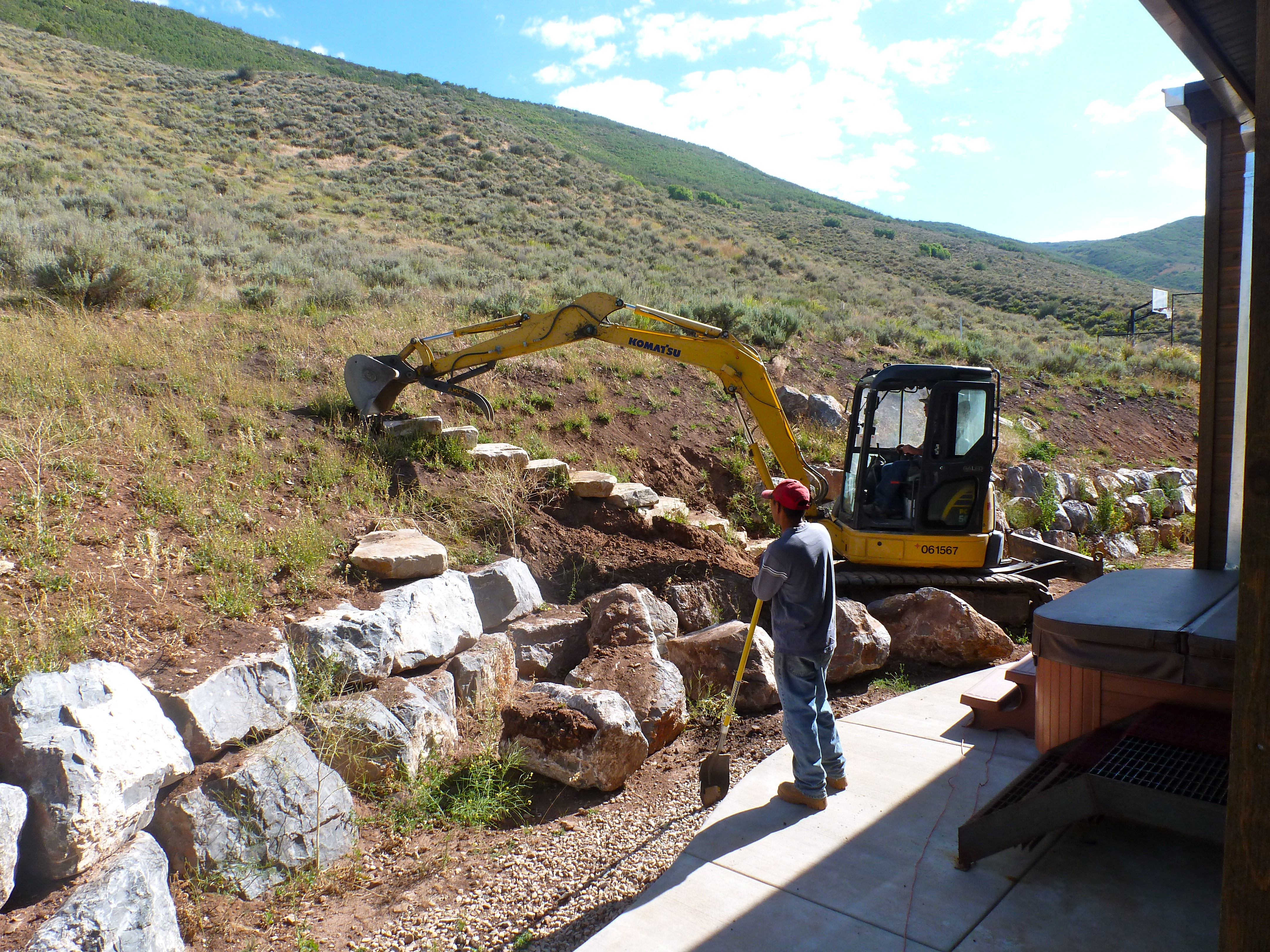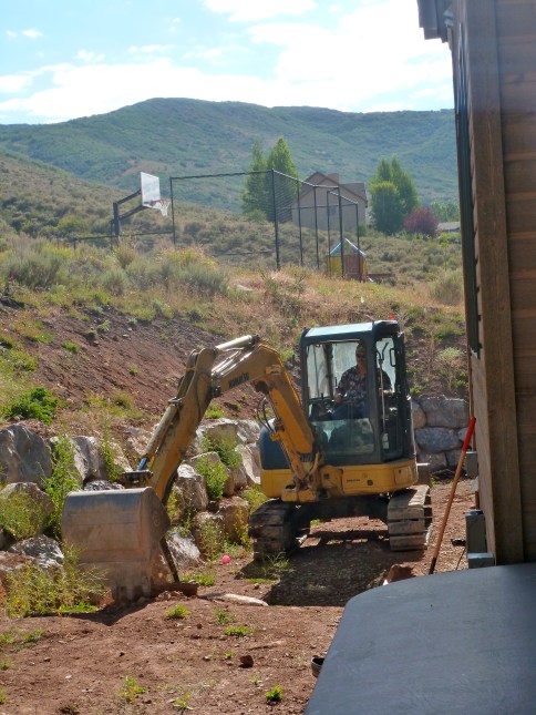 That big old backhoe basically lived at the building site the whole time. He was busy.