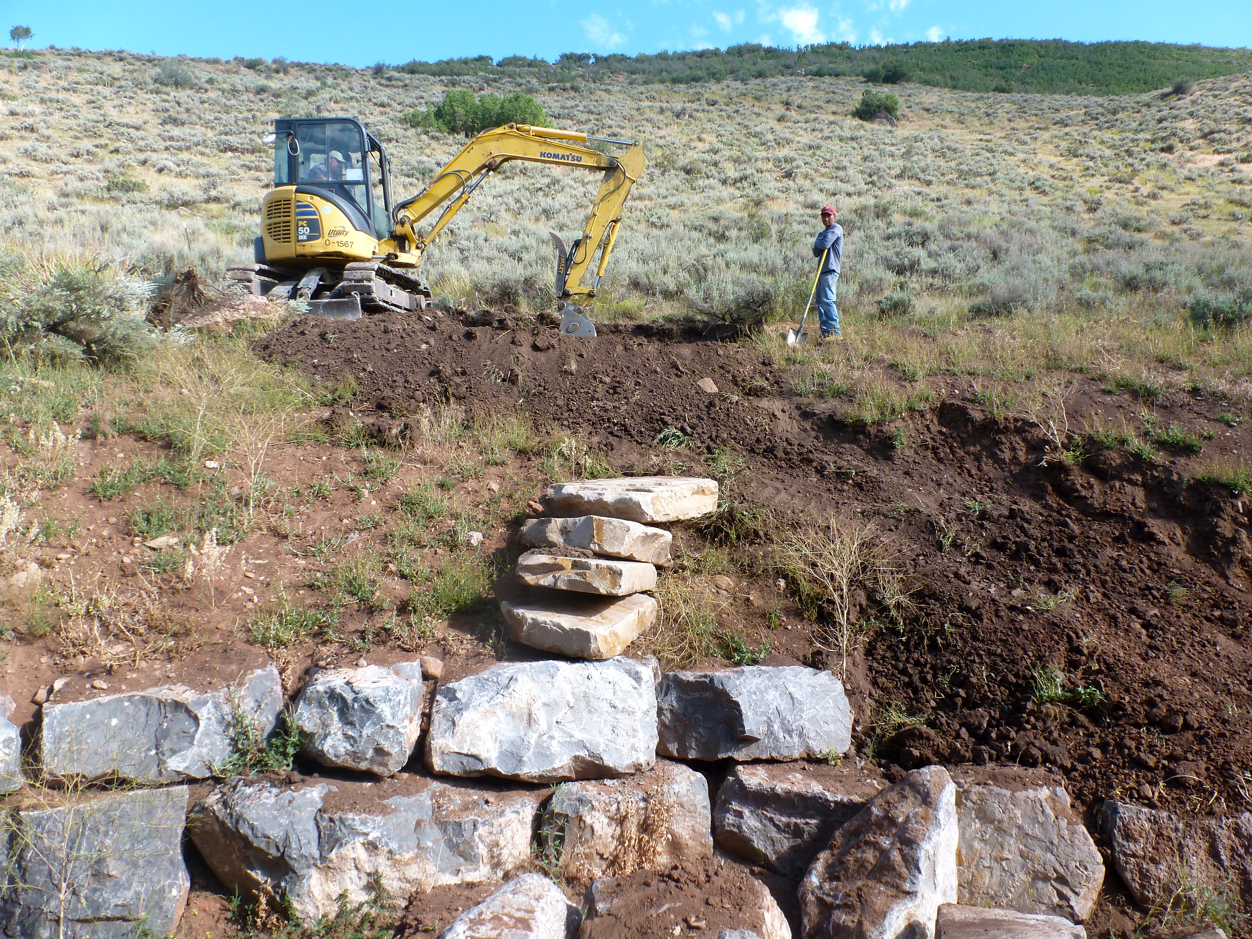 The very last part of completing our home has commenced! We are finally getting landscaping. After much of the summer in a dirt lot (polka-dotted with lovely weeds here and there), we’ll soon have grasses, flowers, shrubs…and a lot of trees. (I love trees.) It’s a big job that will include a fire pit hang-out zone, a vegetable and herb garden area, possibly a greenhouse, and involves moving some a lot of earth and a lot boulders around.