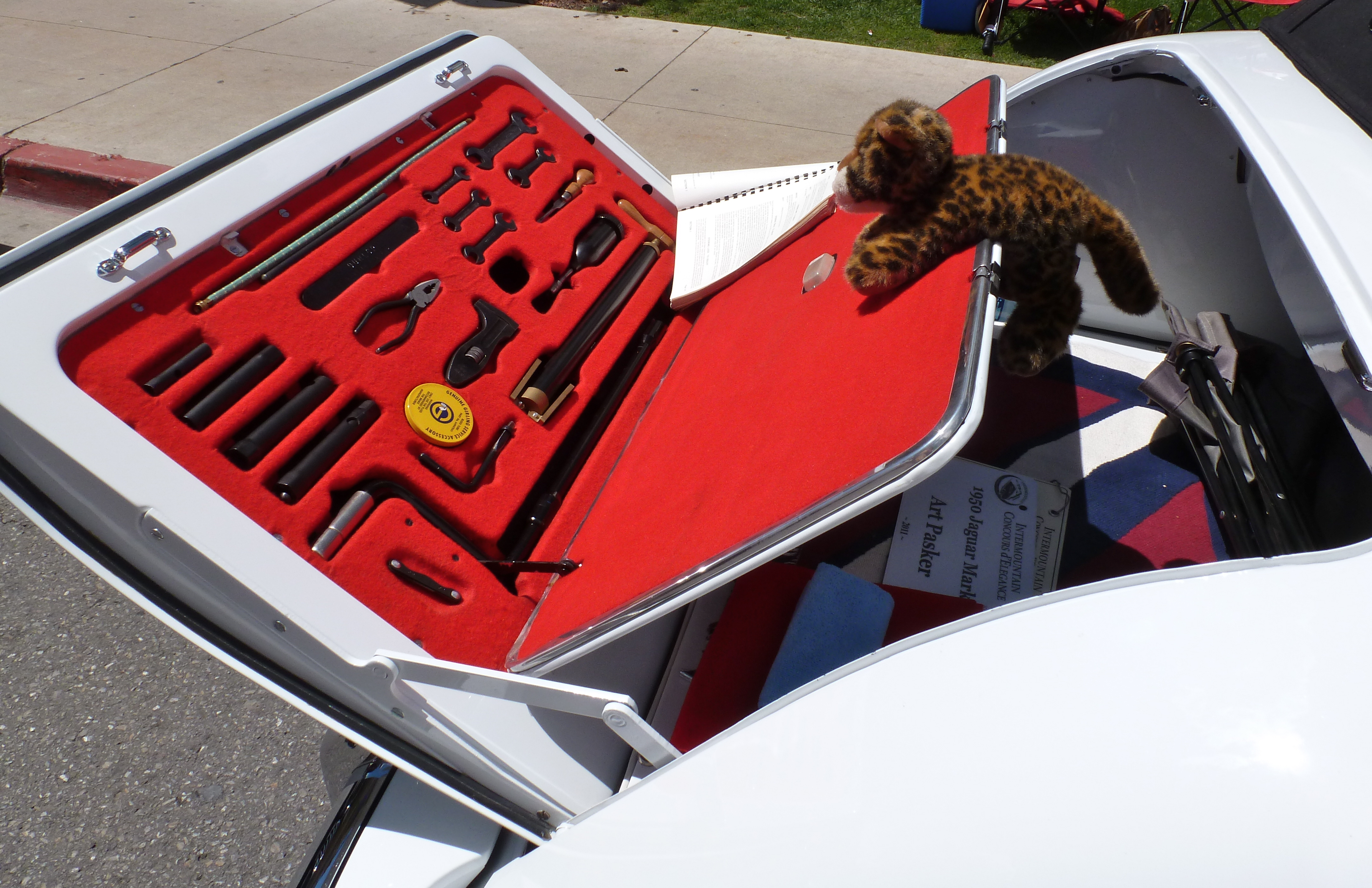This beauty was the star of the show, a 1959 Jaguar Mark V with an awesome tool set in the trunk.