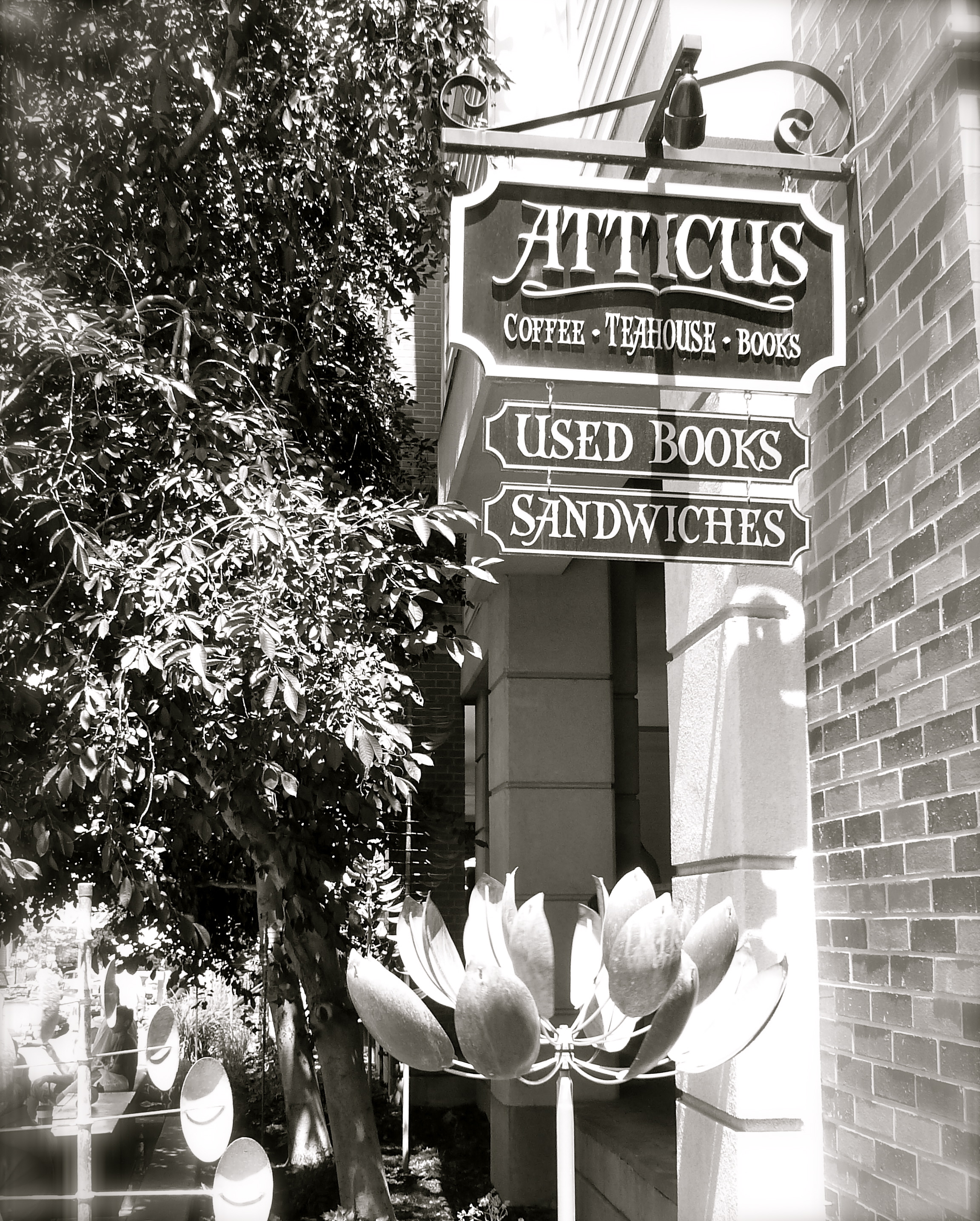 I ordered a turkey wrap named after my favorite character in the book (Scout) and found a seat by the window. There’s a shaded patio out front with plenty of al fresco seating, but I wanted to get a feel for the inside of the place. Opened in July of 2010, Atticus Teahouse is a family-run business. It was smaller than I expected- they pack a lot into the space, but it works. Atticus Teahouse is a feast for the creative eye: there is so much to take in, from random chalkboard quotes to the vintage-style art on the walls to the variety of patrons coming in the door.