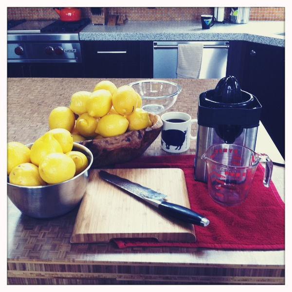This week involves getting ready for guests, having a full house, hosting a party, prepping for a road trip, and wedding decisions before being gone for weeks. My list to accomplish in the kitchen today includes whole wheat apple muffins, baked cinnamon granola, and fresh squeezed honey-ginger lemonade. There’s mayhem in all areas of our yard, adding to the frenzied feeling I have. Simplify? This should be interesting.