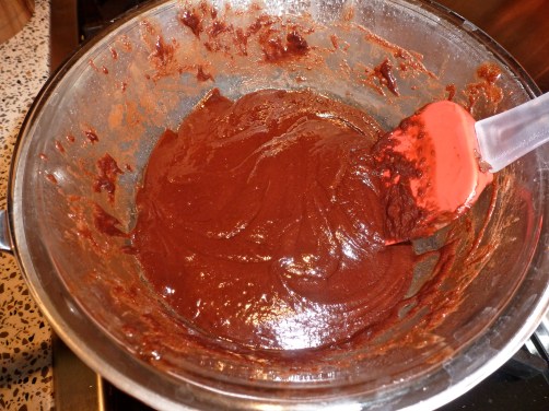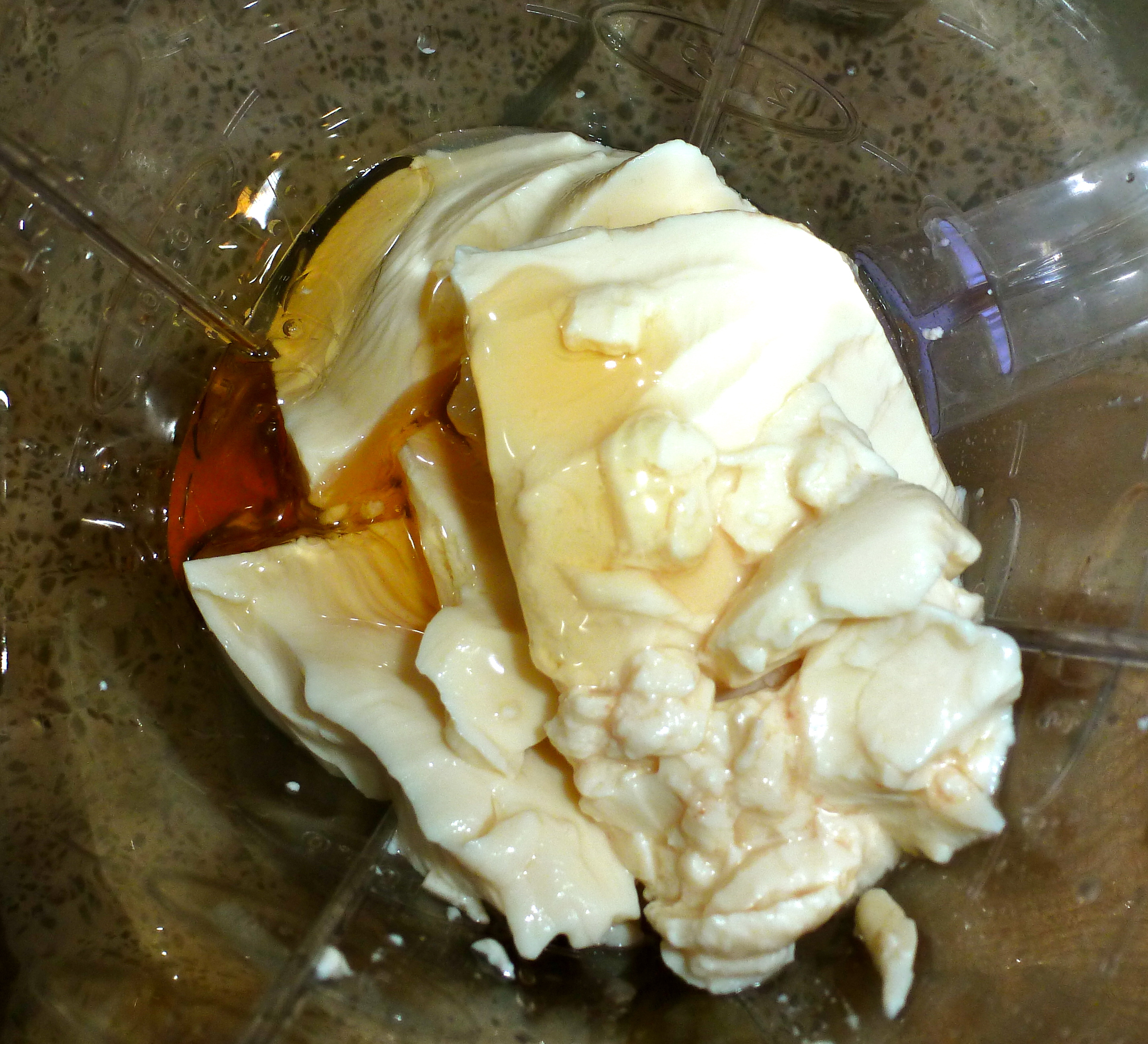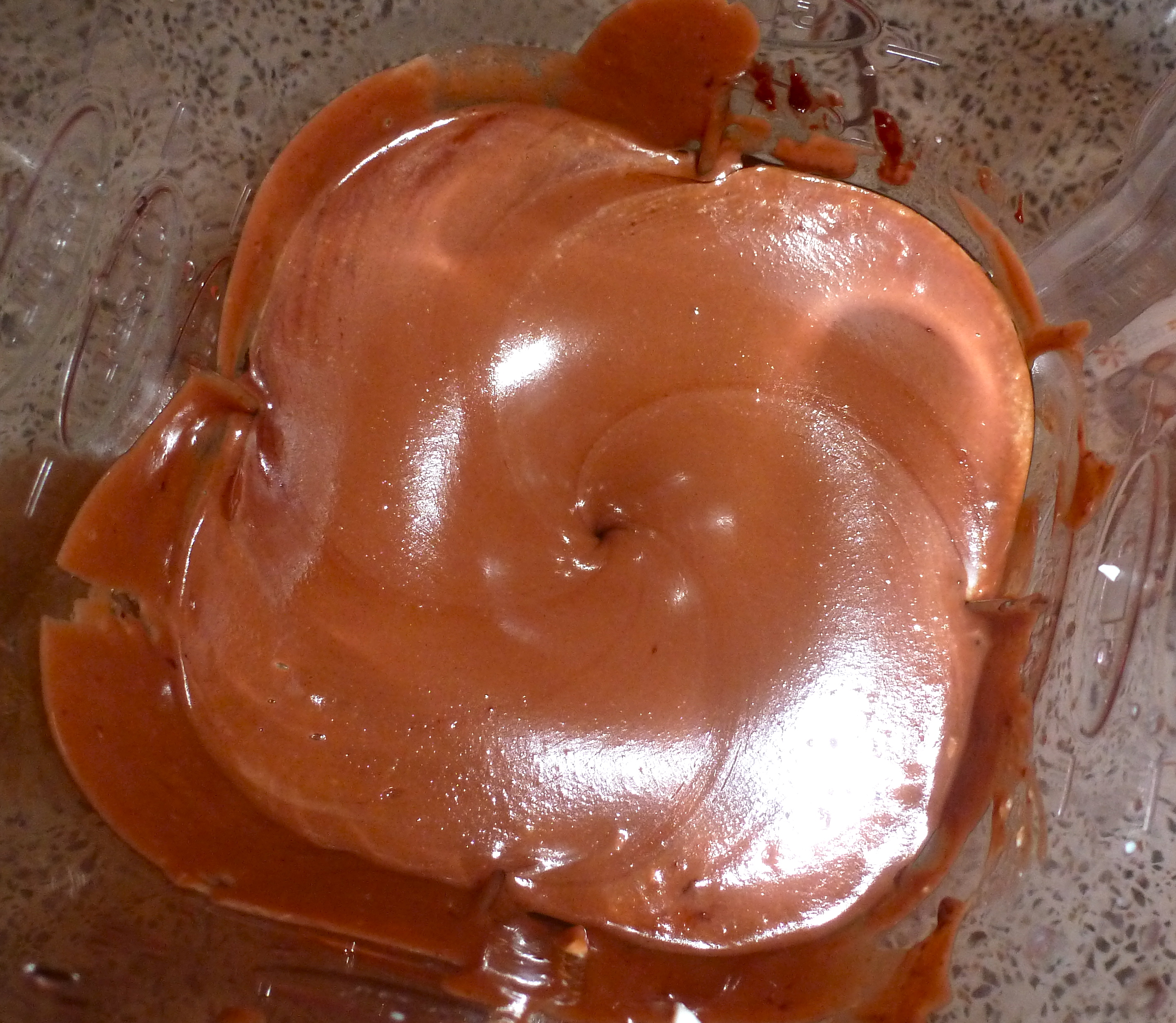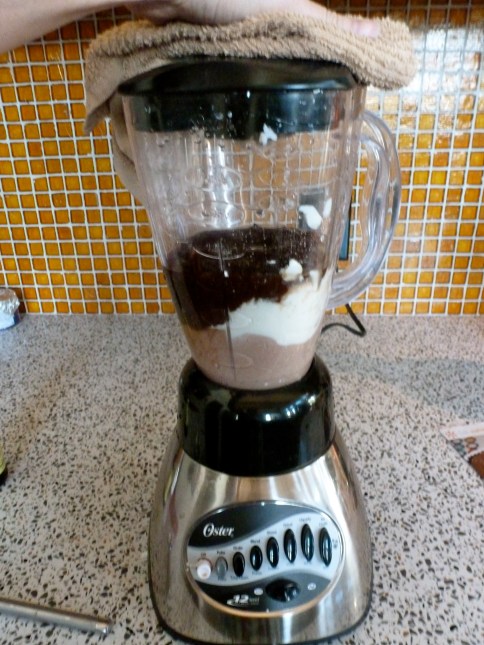 For the filling, I melted the chocolate chips with vanilla and the Kahlua. Then it was into the blender, along with the tofu and some honey. This was my first experience with silken tofu. The texture was super creamy, kind of like yogurt, and I needed to spoon it into the blender. Once the filling was combined, a dip with my finger revealed a totally delish, rich chocolate pudding-y flavor.