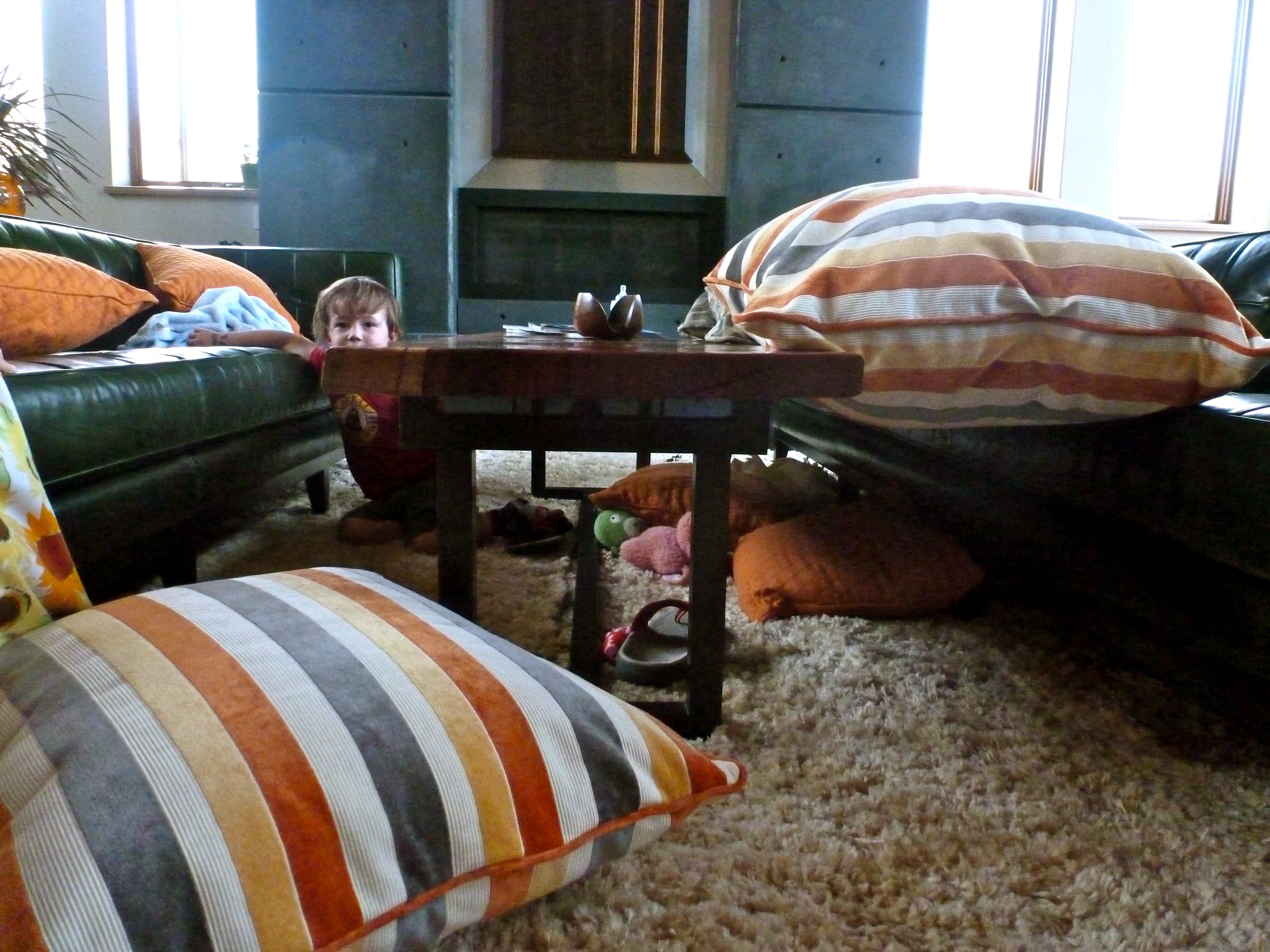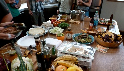 They invited some friends and colleagues over for a get-together last night, and it was a great group of people. We had summertime cocktails and a delicious, farm-fresh feast of tequila-lime fish tacos, caprese salad, grilled spicy peppers. There was even a couch-pillow fort. Sounds like a success to me!