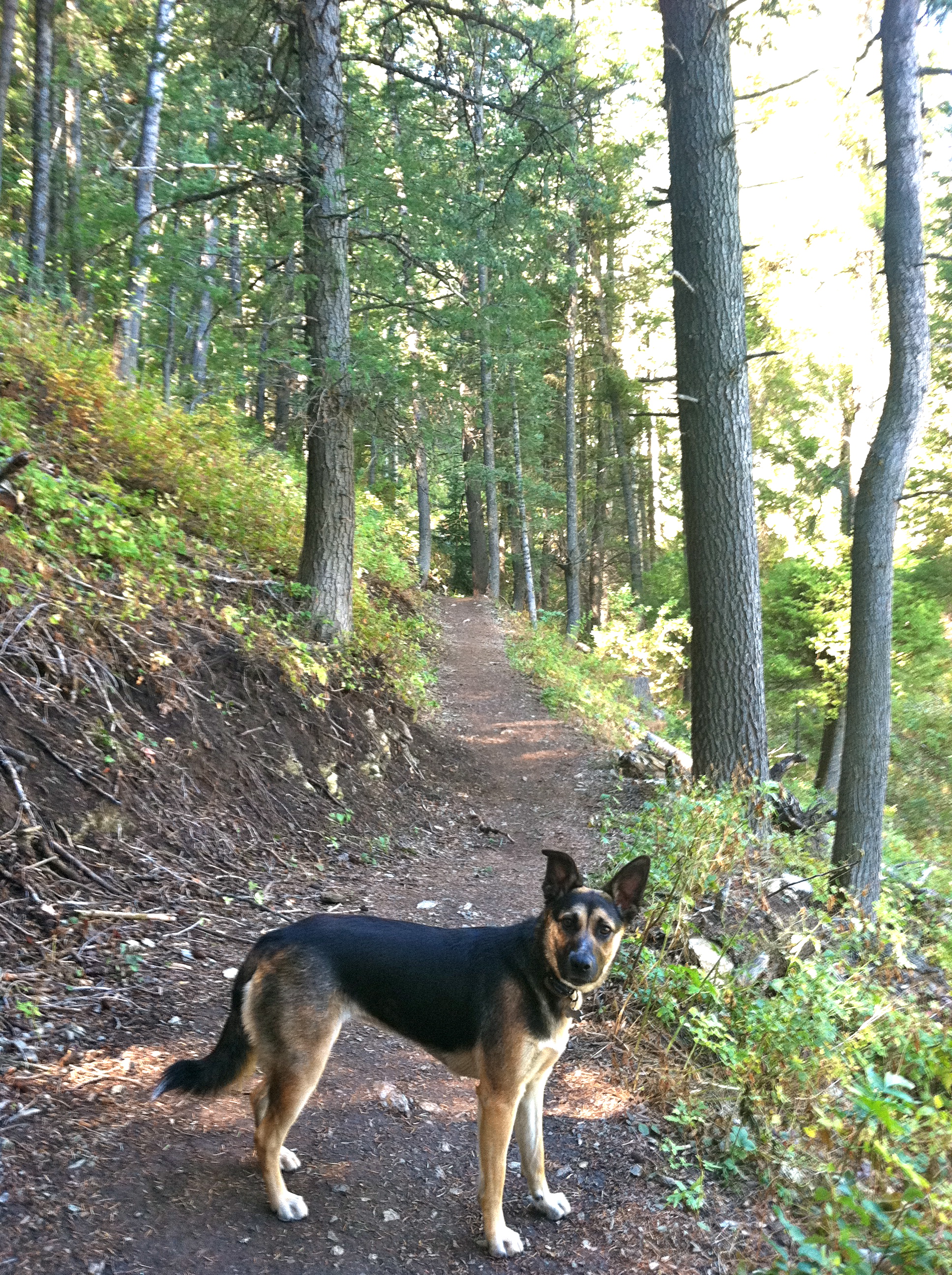 John spent the morning golfing, so Cholula and I hit the trails. I felt so lucky to live here after our hike the night before. So after my coffee fix, we drove over to Summit Park. My co-pilot looks suspicious, don’t you agree?