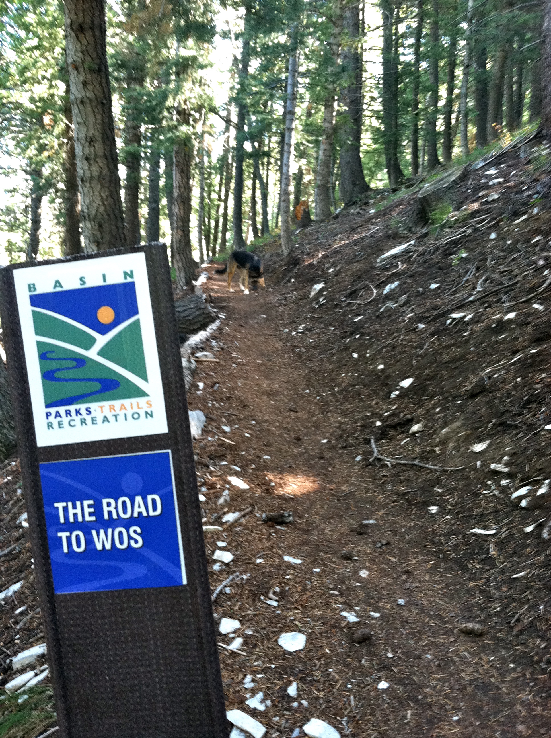 I had selected these trails because I wanted to get up into the vibrant fall foliage I’ve been seeing across the valley from our home. I’m still unfamiliar with the Park City trail system, but vaguely remembered The Road to WOS being a loop. So I followed the sign.