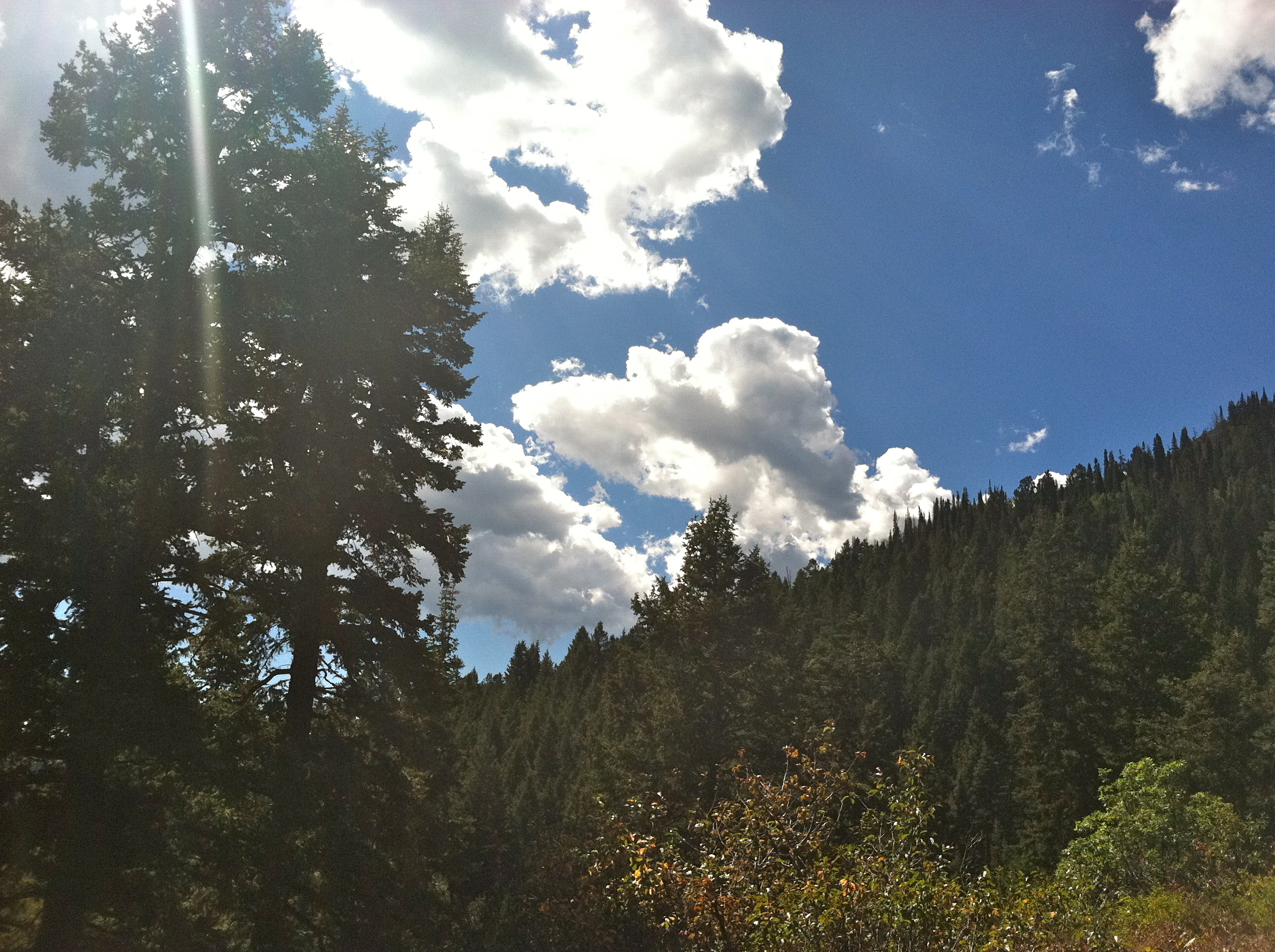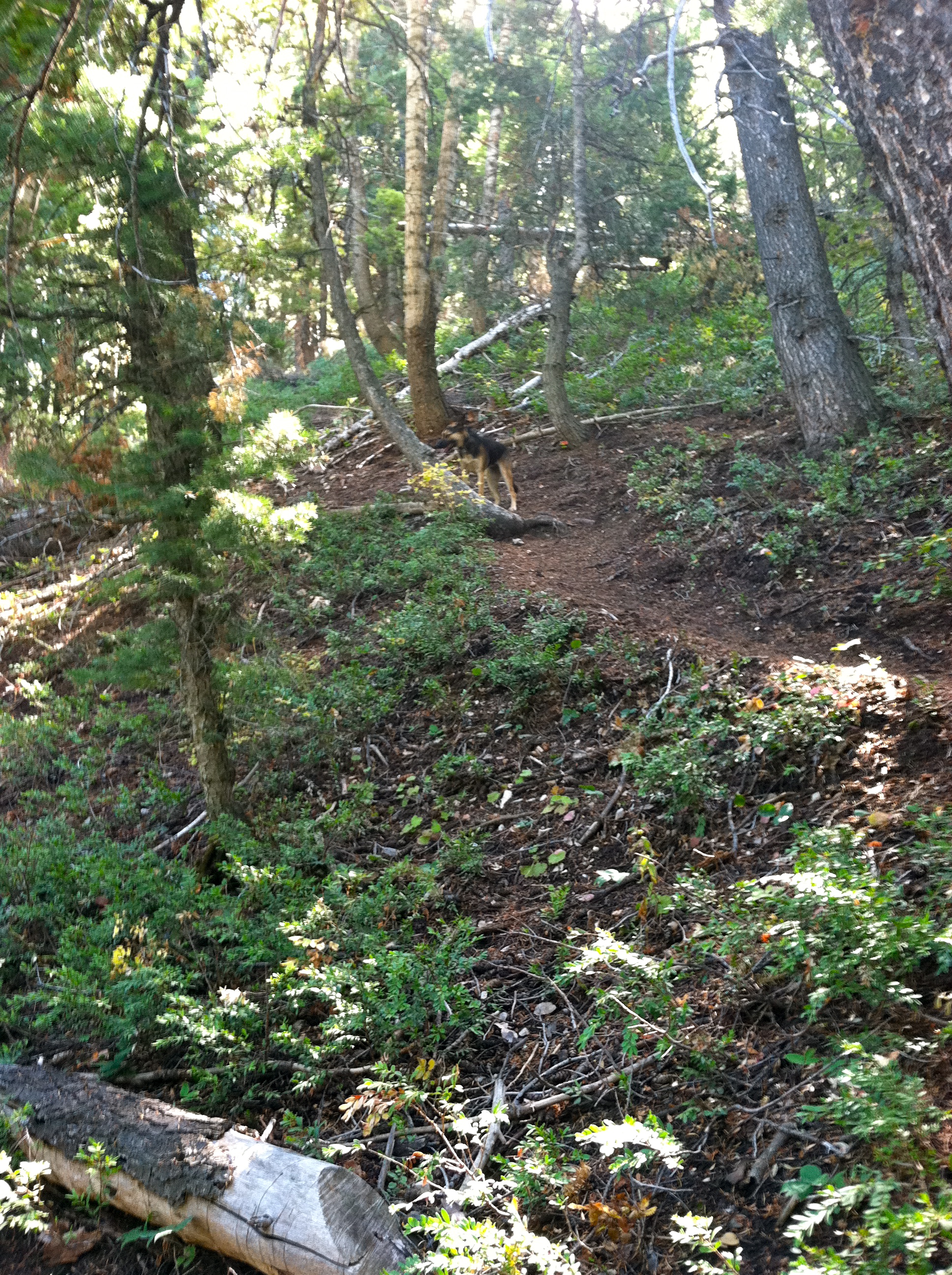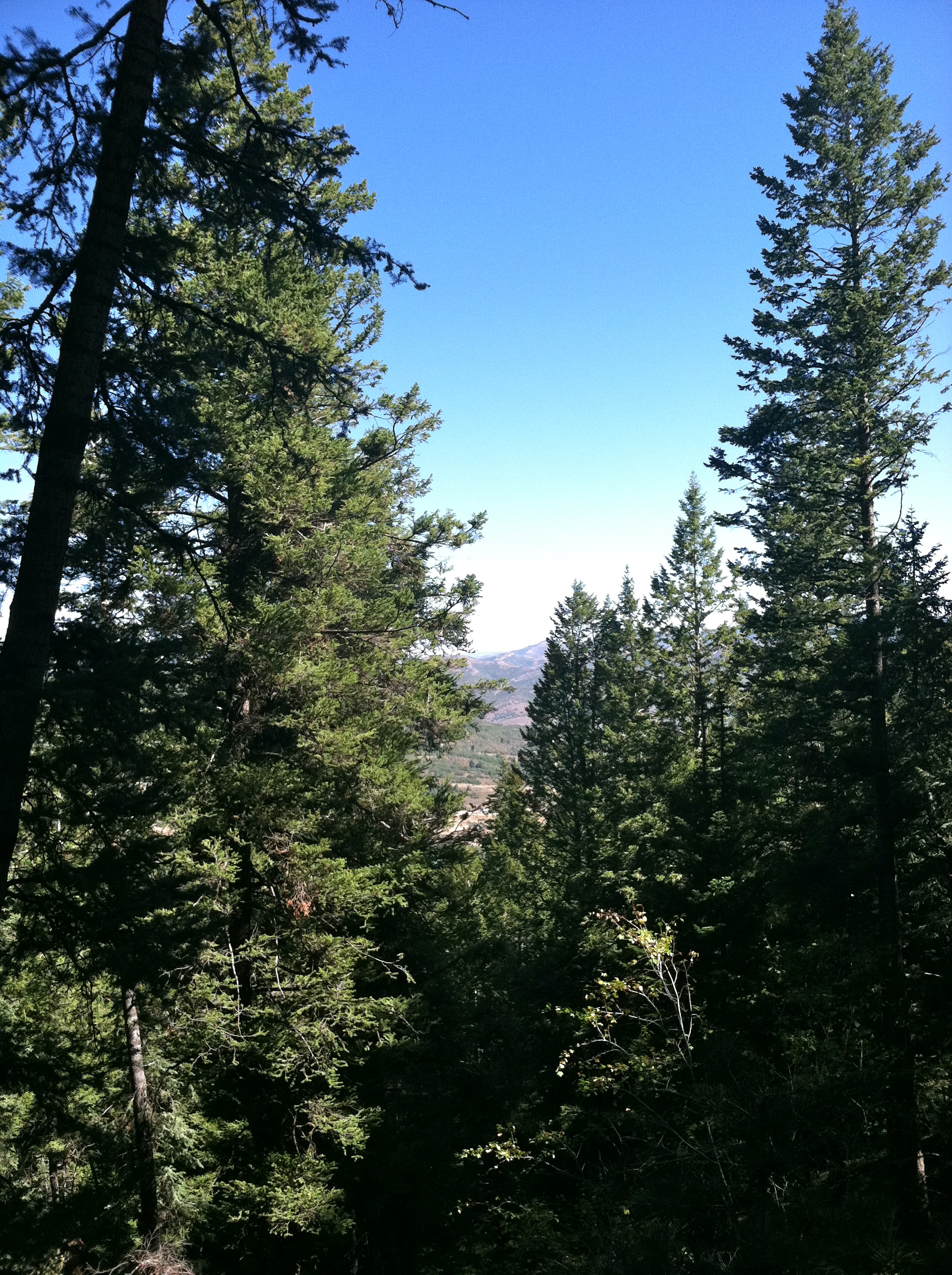 It’s a quick uphill, right from the trailhead, and then there’s a series of long switchbacks through the pines. The trail was perfectly nicely tacky after a couple of evenings of rain, but not muddy. The almost-dampness kept us cool in the shade.