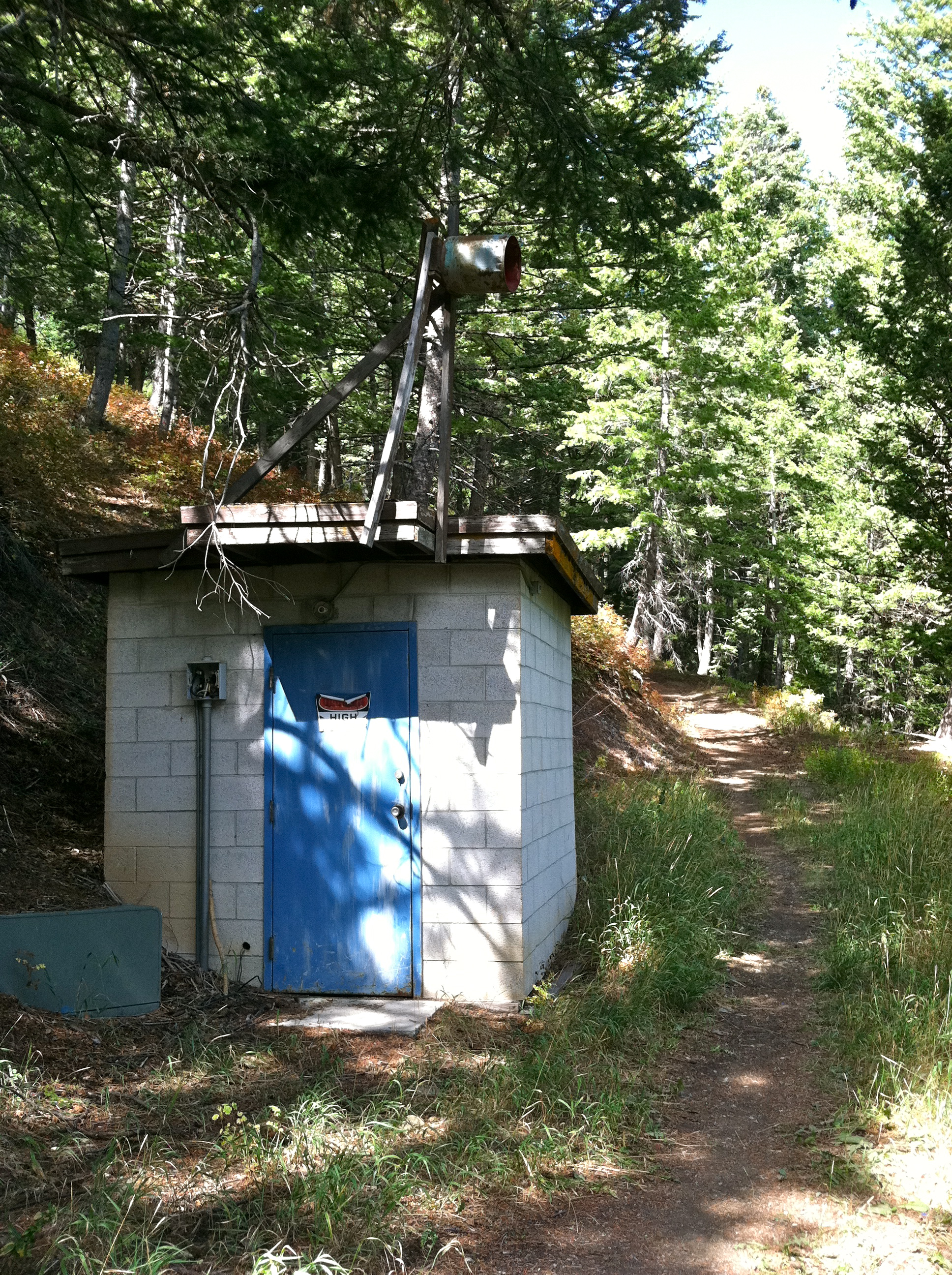 As we descended the trail, we passed a big water tank and an old utilities building. We followed the signs toward the trailhead from The Road to WOS and paused to say thank you to the last few summertime flowers.
