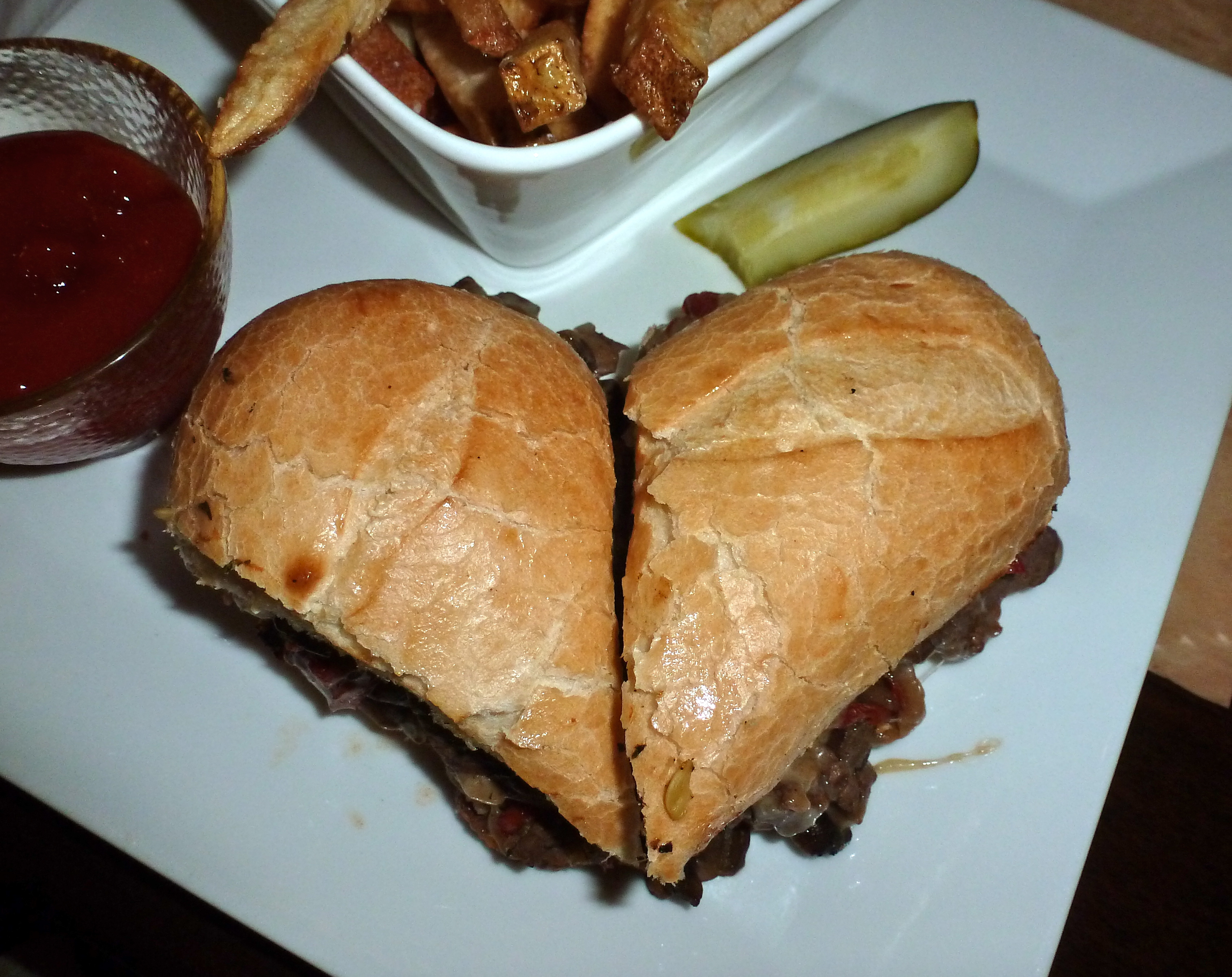 Sufficiently relaxed and gussied up, we headed to dinner at the Aerie. I just love how they arrange the sandwiches into the shape of a heart. (It’s probably supposed to be Snowbird’s logo, but I see a heart!)