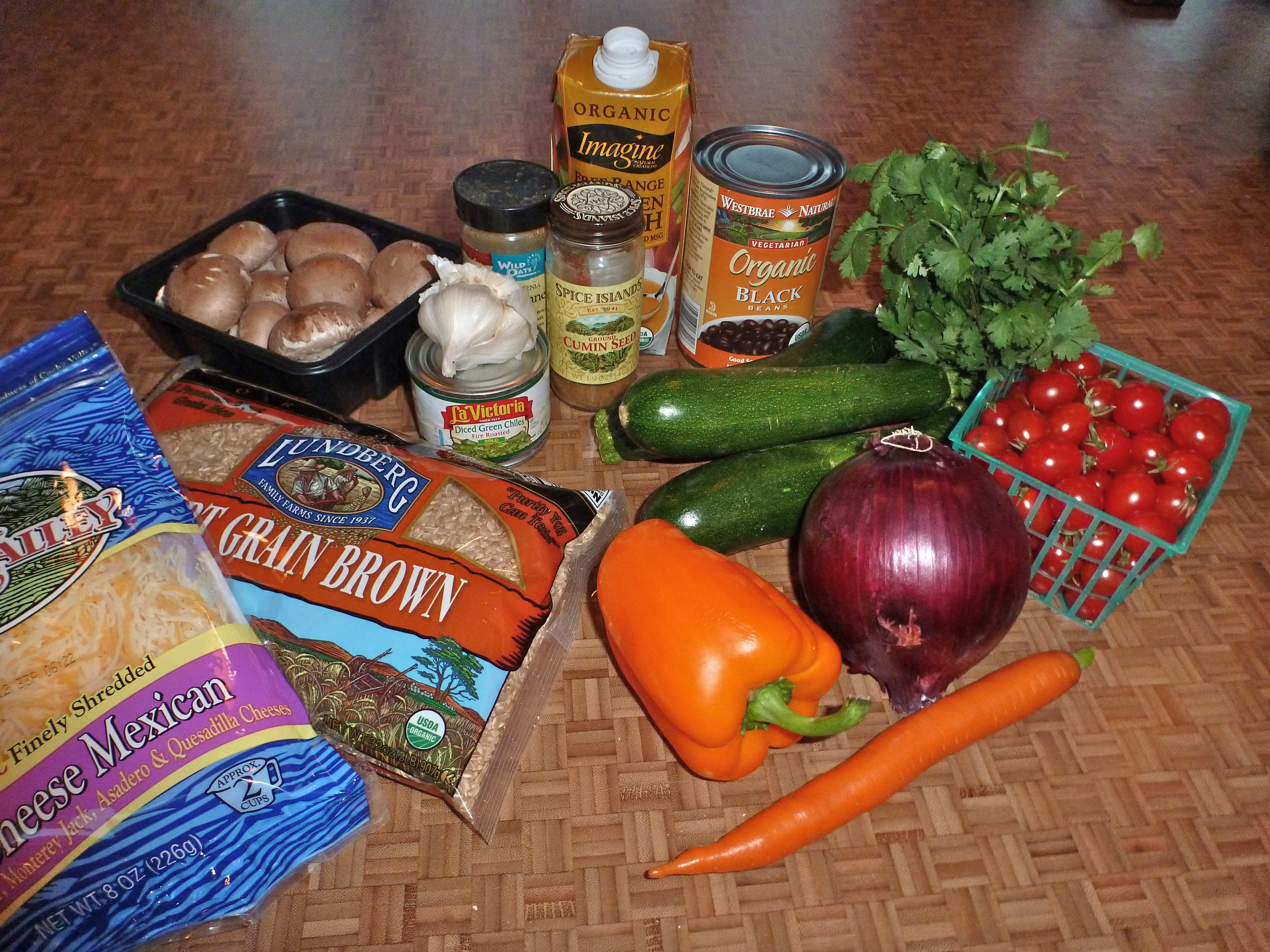 As I read over the recipe more carefully, I realized it’s quite similar to many other casseroles I’ve made dozens of times. The process is the same: chop, saute, mix, top with cheese, bake. This version includes brown rice and I added a bunch of veggies to make it even more healthy.