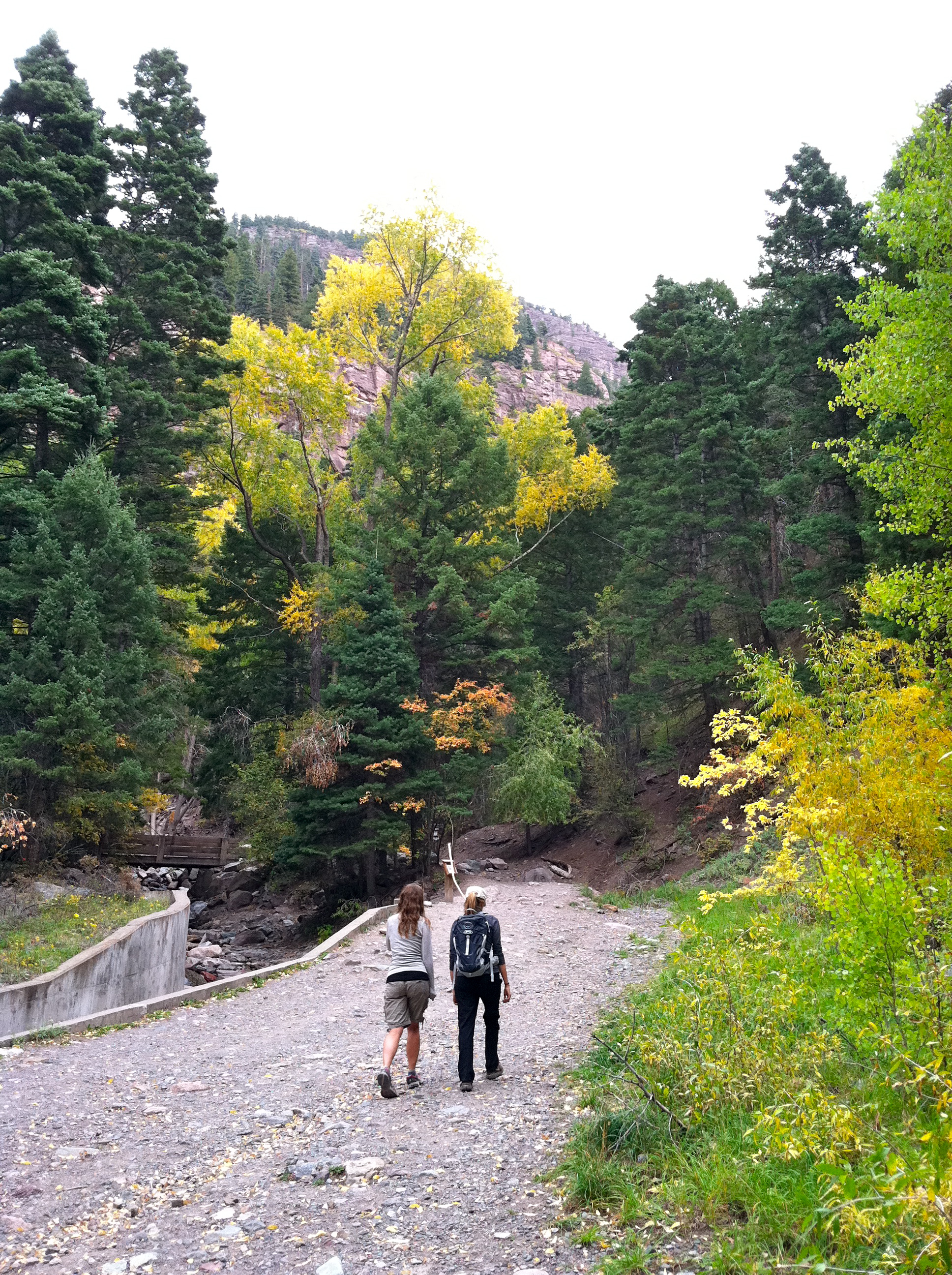 On Saturday, Sarah and Jessica picked me up and off we went. The plan was to head up into the mountains, past Silverton, over Red Mountain Pass, down into glorious Ouray, and on to Ridgway where Chipeta Sun Lodge awaited with spa appointments, hot springs soaking, dinner, hiking, ahhhhhhhh. That part of the world is completely stunning any time of year, but we hit the peak fall colors. We stopped a lot along the way, and gasped and pointed often.