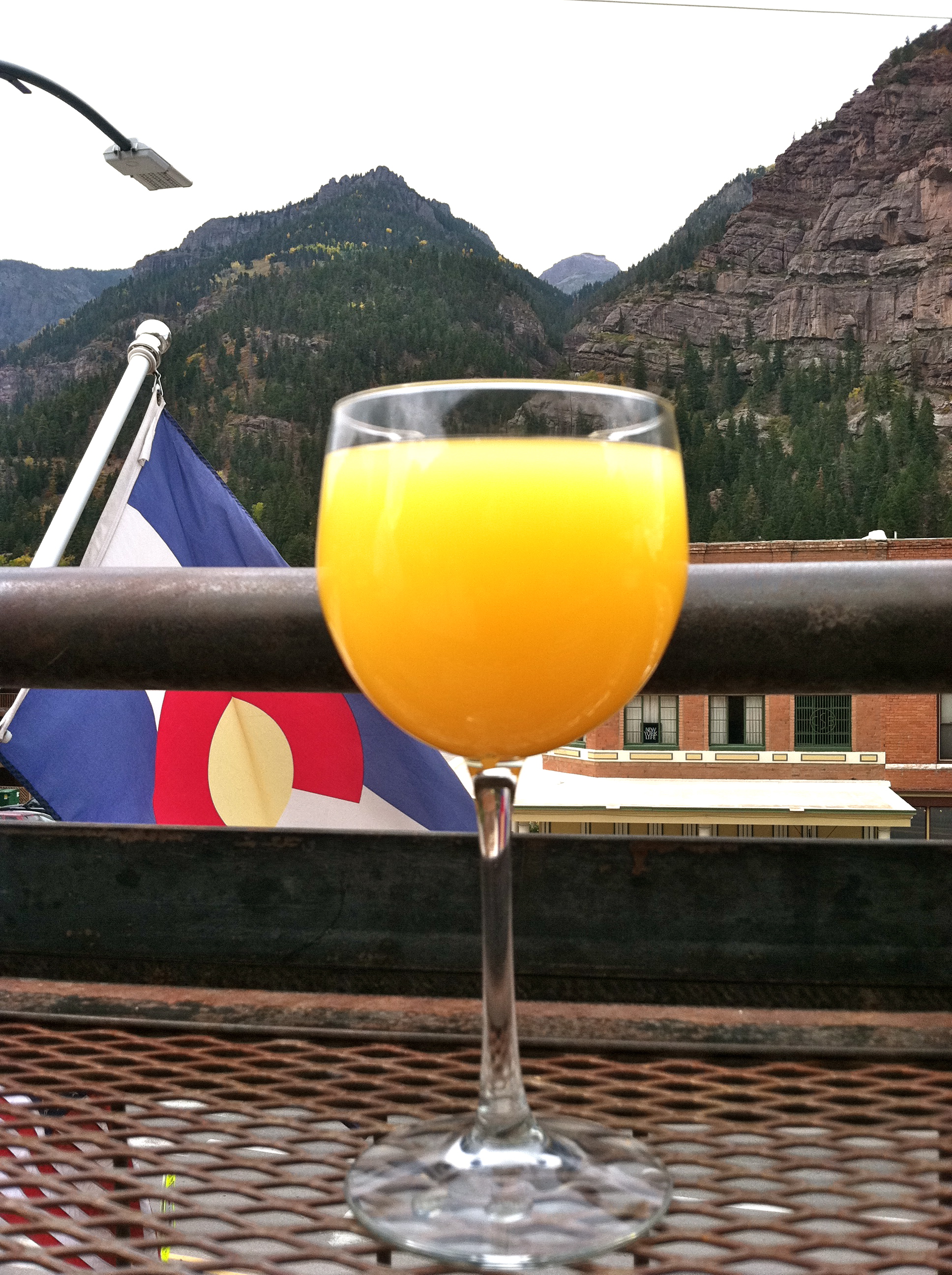 Before we headed back town into Durango, we enjoyed a mimosa on the deck of the Ouray Brewing Company, right after a swing at their bar.