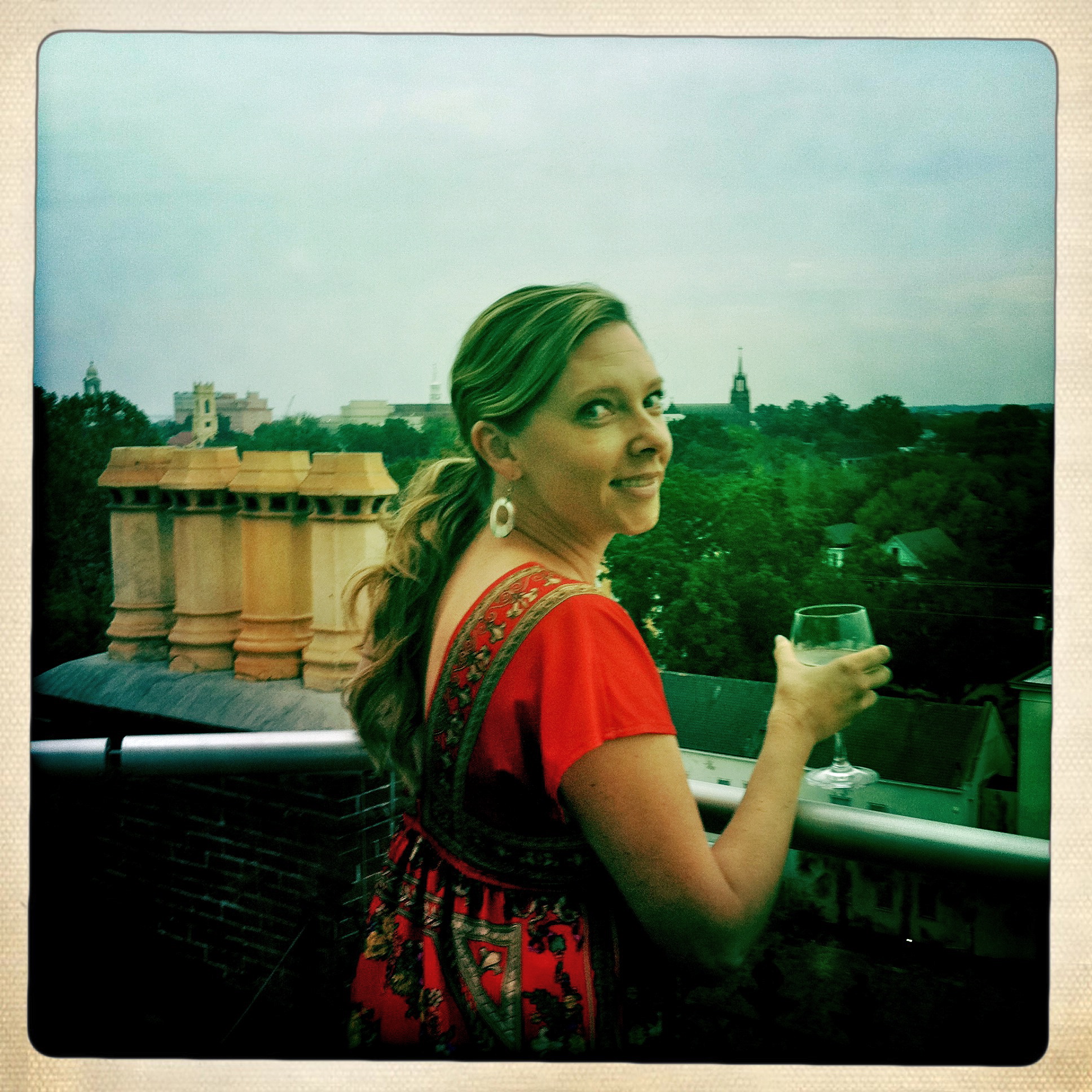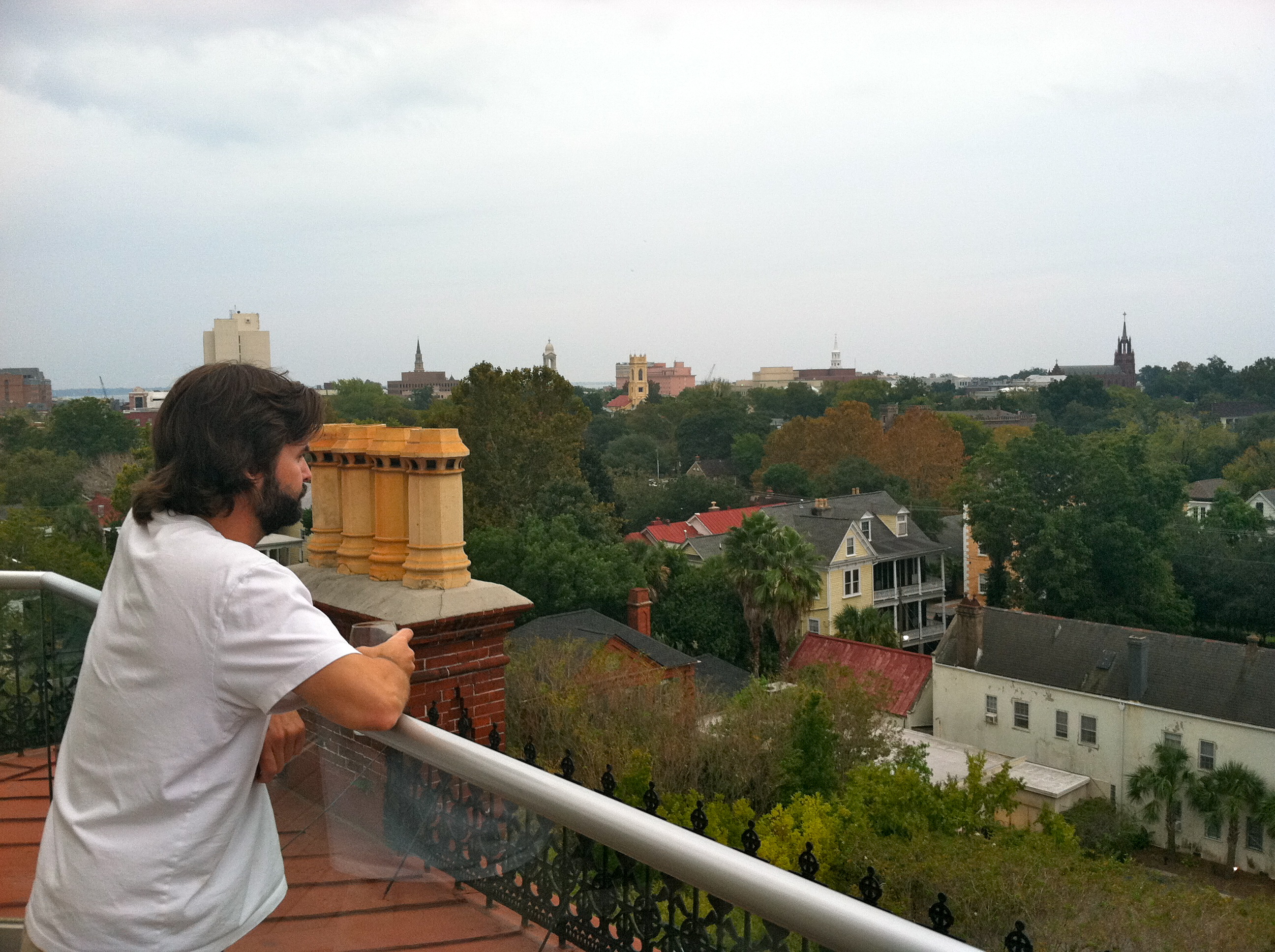 We sipped wine and nibbled cheese and relaxed on our private little veranda. Another special feature at the Mansion is the cupola. A spiral staircase leads up to a 360 degree view of Charleston. Glorious.